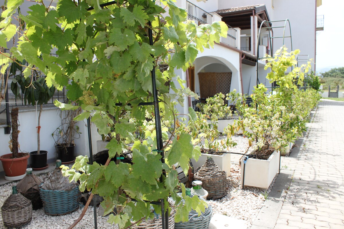 Una casa in pietra, costruita nei primi anni del Novecento ristrutturata di recente. L'alloggio si trova al piano terra, indipendente dal resto della struttura. Dal cancelletto esterno, si accede a una grande terrazza con giardino e vista sulla collina, dove domina un grande albero di Alloro quasi centenario. La struttura si trova a pochi passi dal centro, con la Chiesa del XVIII secolo, farmacia, bar, ristoranti pizzeria e una deliziosa gelateria.