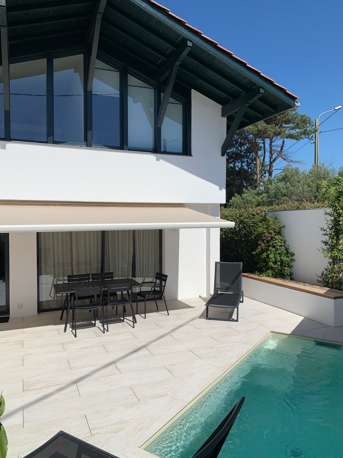 Profitez d’un logement confortable lumineux et climatisé, avec accès direct sur jardin et piscine. Cet hébergement est joliment aménagé avec tout le confort. il dispose d’un tres grand lit, d’une cuisine toute équipée, et d’un extérieur ensoleillé. Parfait pour un couple avec bébé. A proximité de l’océan, à 12 min en voiture des plages de Bidart ou St Jean de Luz. Idéalement situé entre Biarritz, Bidart , Arcangues,Guéthary, Espelette donc entre océan et villages typiques