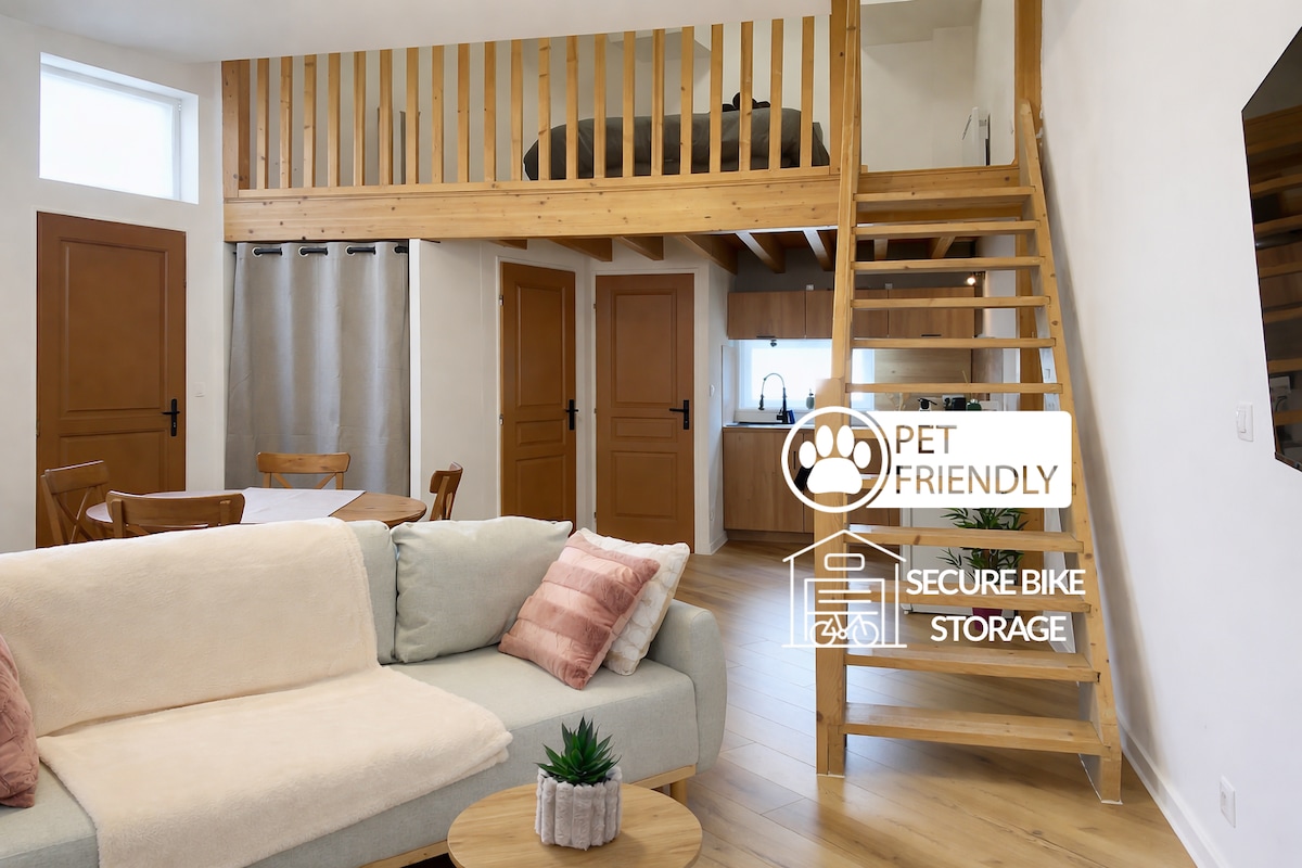Hemos renovado completamente nuestro apartamento en el centro de la ciudad para convertirlo en un espacio cálido y agradable para vivir. Todo está pensado para su comodidad: una acogedora sala de estar, una cocina equipada, un dormitorio con ropa de cama cómoda y un baño moderno. Encontrará todo lo necesario para una estadía sin preocupaciones: WiFi, lavadora, secador de pelo… Ya sea que esté de viaje o de viaje, ¡estaremos encantados de darle la bienvenida!