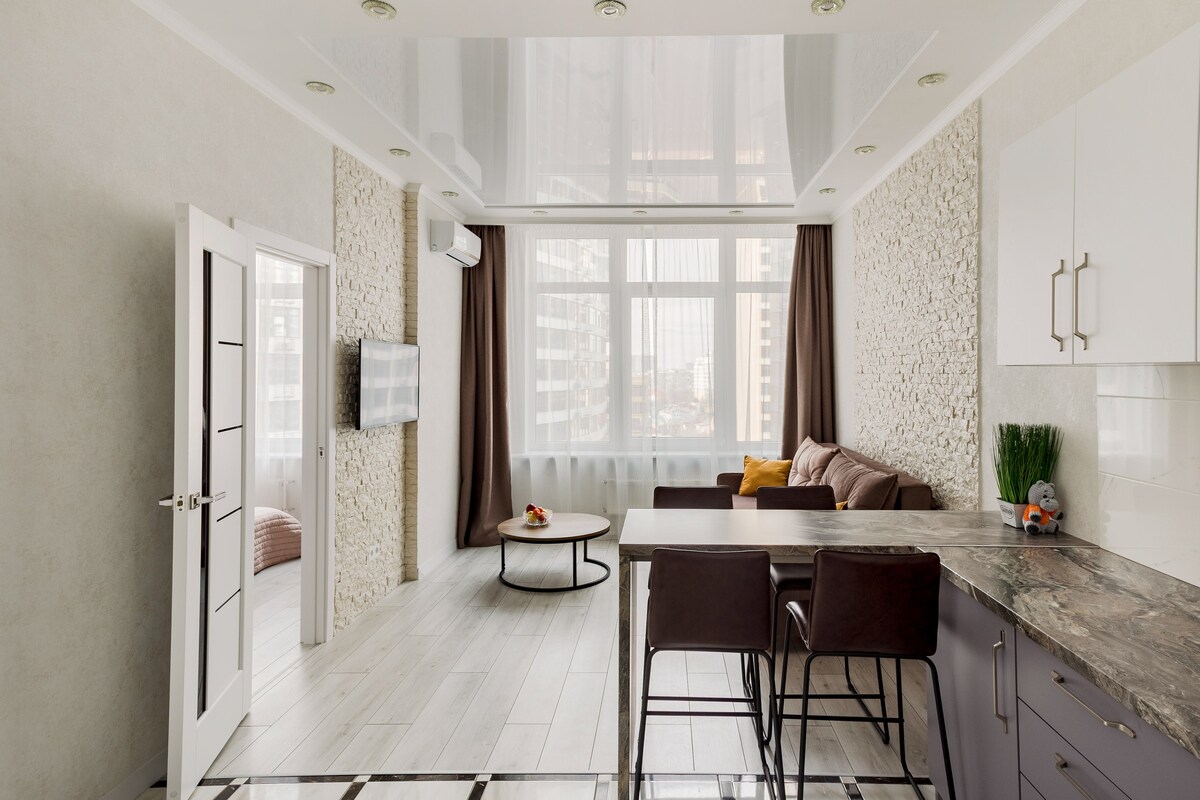 Un apartamento acogedor y elegante con reformas de autor te invita a reiniciar en este lugar tranquilo y elegante. Superficie total 32 m2+patio 65 m2. Zona cerrada, videovigilancia, parque infantil. El aparcamiento de los huéspedes está justo enfrente del apartamento. Aparcamiento por acuerdo separado. En el territorio del complejo residencial hay un restaurante, spa, salón cosmológico, clínica dental, salón de aseo, tienda de comestibles, parques infantiles para niños. Un barrio tranquilo y tranquilo con una ubicación muy buena.