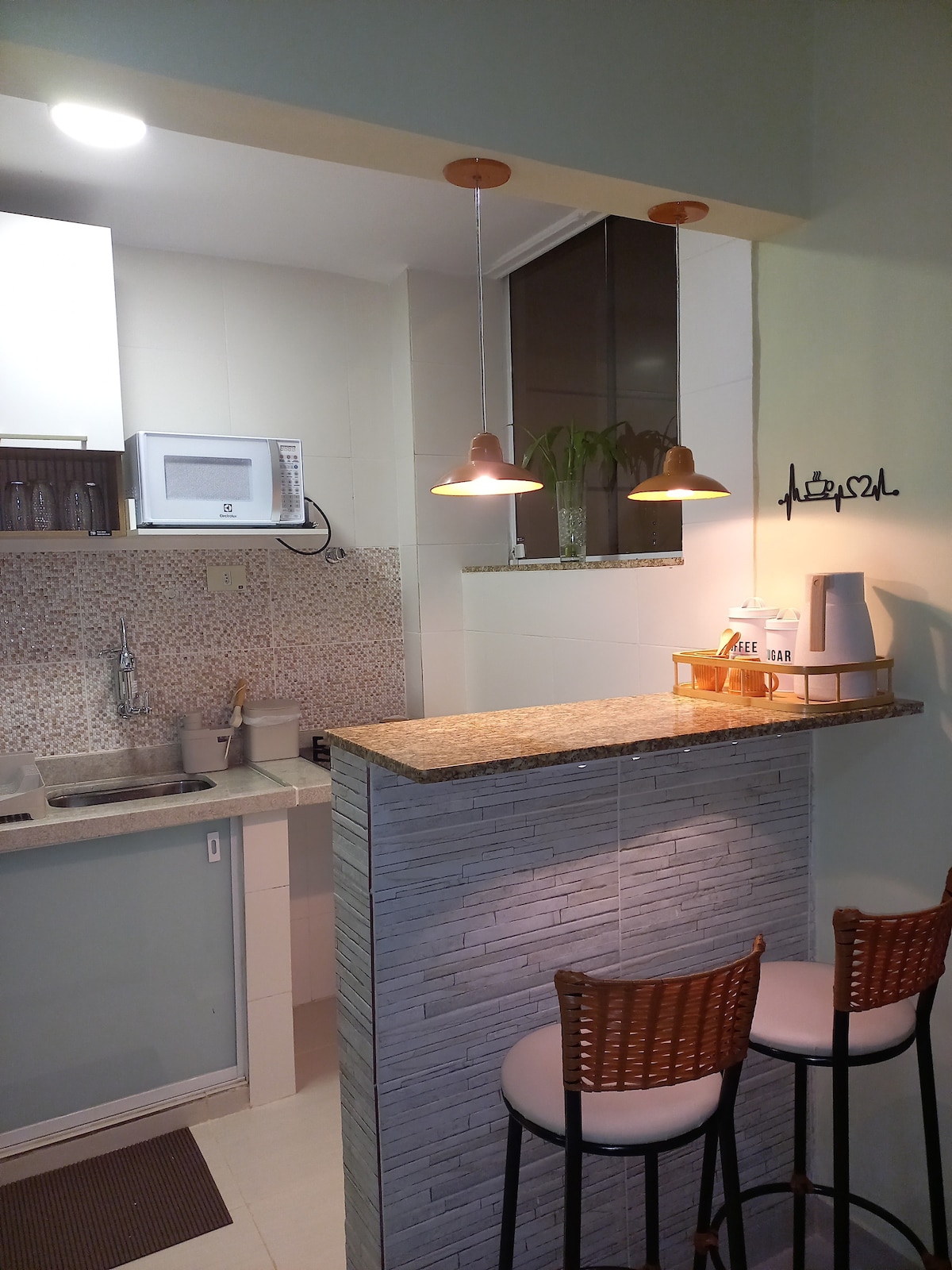 Apartamento, estilo loft, muy moderno y acogedor. Tiene habitaciones independientes con cama de matrimonio. Sofá cama en la sala, baño espacioso, aseo independiente. Todo bien planeado y decorado. La zona gourmet está integrada en la sala de estar (cocina americana), ideal para la interacción entre los huéspedes. Cocina con cocina eléctrica de 2 hornillas, minibar, microondas, horno eléctrico y cafetera, etc. Toallas y ropa de cama para los huéspedes. A menos de 10 minutos, hasta el metro o Aterro do Flamengo y otros puntos culturales.