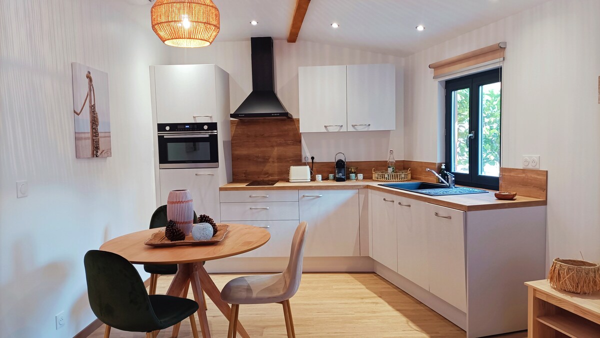 Ubicado bajo los robles y en una zona tranquila, te invitamos a descubrir nuestro encantador estudio nuevo de 40 m2, idealmente situado entre Arcachon y Cap Ferret. Este estudio, a la vez espacioso y cómodo, está equipado con una cocina moderna, aire acondicionado reversible y un espacio de trabajo equipado con conexión de fibra. Una plaza de aparcamiento está a su disposición con la posibilidad de recargar su vehículo eléctrico.