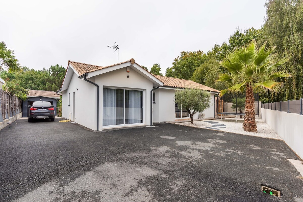 Notre maison, entièrement rénovée en 2018, vous accueille pour des vacances ou un long week-end dans la partie sauvage du Bassin d'Arcachon. Idéalement située dans une rue très calme du centre d'Arès, vous serez à 3 minutes à pied du bassin et 15 min en voiture des plages océanes du Cap ferret. Vous pourrez tout faire à pied ou à vélo (balades, plage, courses, shopping, marché d'Arès). Vous pourrez aussi profiter du jardin et de la grande terrasse en bois, dans un environnement paisible.