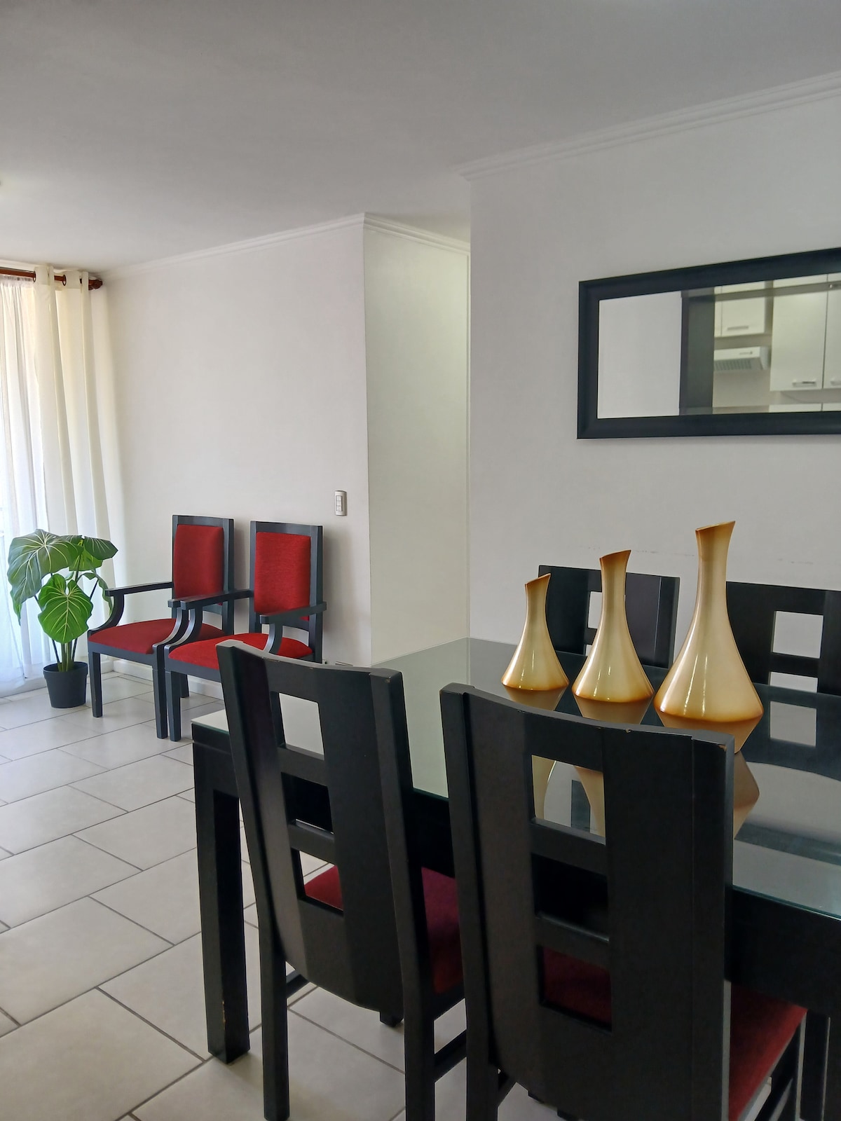 Departamento completamente amoblado para 5 personas a pasos de Playa Las Machas y Chinchorro situado dentro de condominio residencial con guardias. Excelente ubicación tranquila y segura, cercana a restaurantes, minimarket, lugares de venta de comida, plaza con juegos deportivos. Excelente conectividad. Ubicado en tercer piso sin ascensor. El depto consta de: 3 Dormitorios 1 Baño Cocina Lavadora Terraza con futón Wi-fi 2 TV con aplicaciones Estacionamiento Disponibilidad arriendo de auto diario