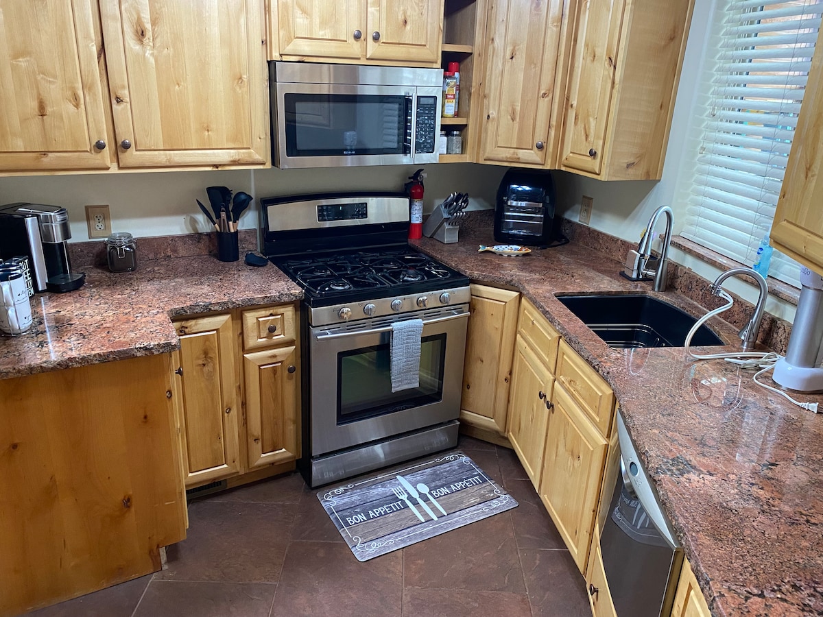 ¡Este lujoso entorno de yurta es la única yurta de la ciudad! Bellamente decorada con servicios atentos. La enorme terraza elevada ofrece las vistas más impresionantes y la experiencia interior/exterior más increíble que puedas imaginar. Lee un libro en la bañera de inmersión para dos personas, contempla las estrellas y disfruta de una noche relajante junto a la chimenea en la terraza. La escapada romántica perfecta o un viaje familiar por carretera. Pine tiene un bullicioso centro con fantásticos restaurantes y está a poca distancia en coche de muchas maravillas naturales.