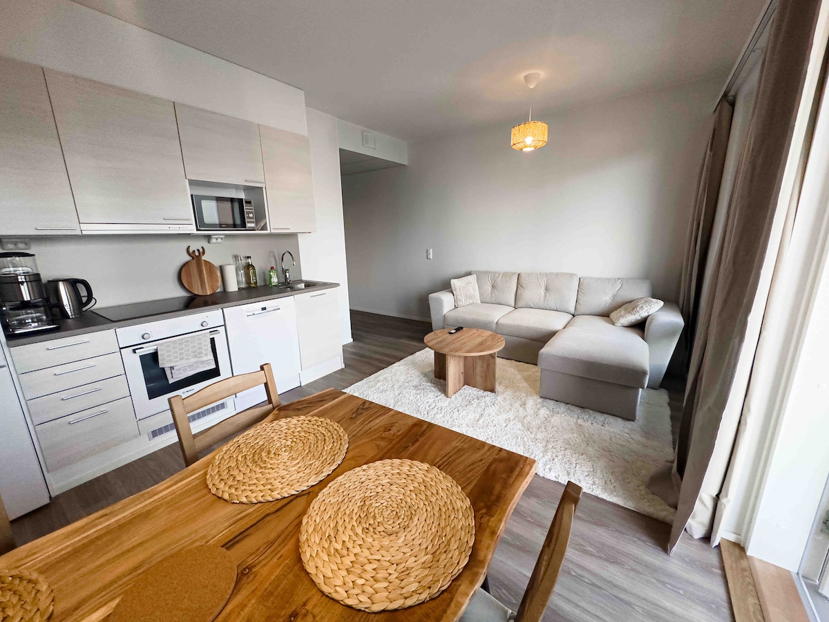 Apartamento moderno con un dormitorio (habitación principal, alcoba, cocina, baño con lavadora) en un edificio construido en 2019 ubicado en el centro de Rovaniemi. Todos los servicios (centro comercial, Korundi, Arktikum, parada de autobús al pueblo de Santa, restaurantes) a pocos minutos a pie. Ropa de cama y toallas incluidas. Ideal para dos personas, pero tiene capacidad para cuatro personas. Una cama de matrimonio de 140 cm y un sofá convertible. Cocina totalmente equipada. Ducha, terraza, wifi gratuito.