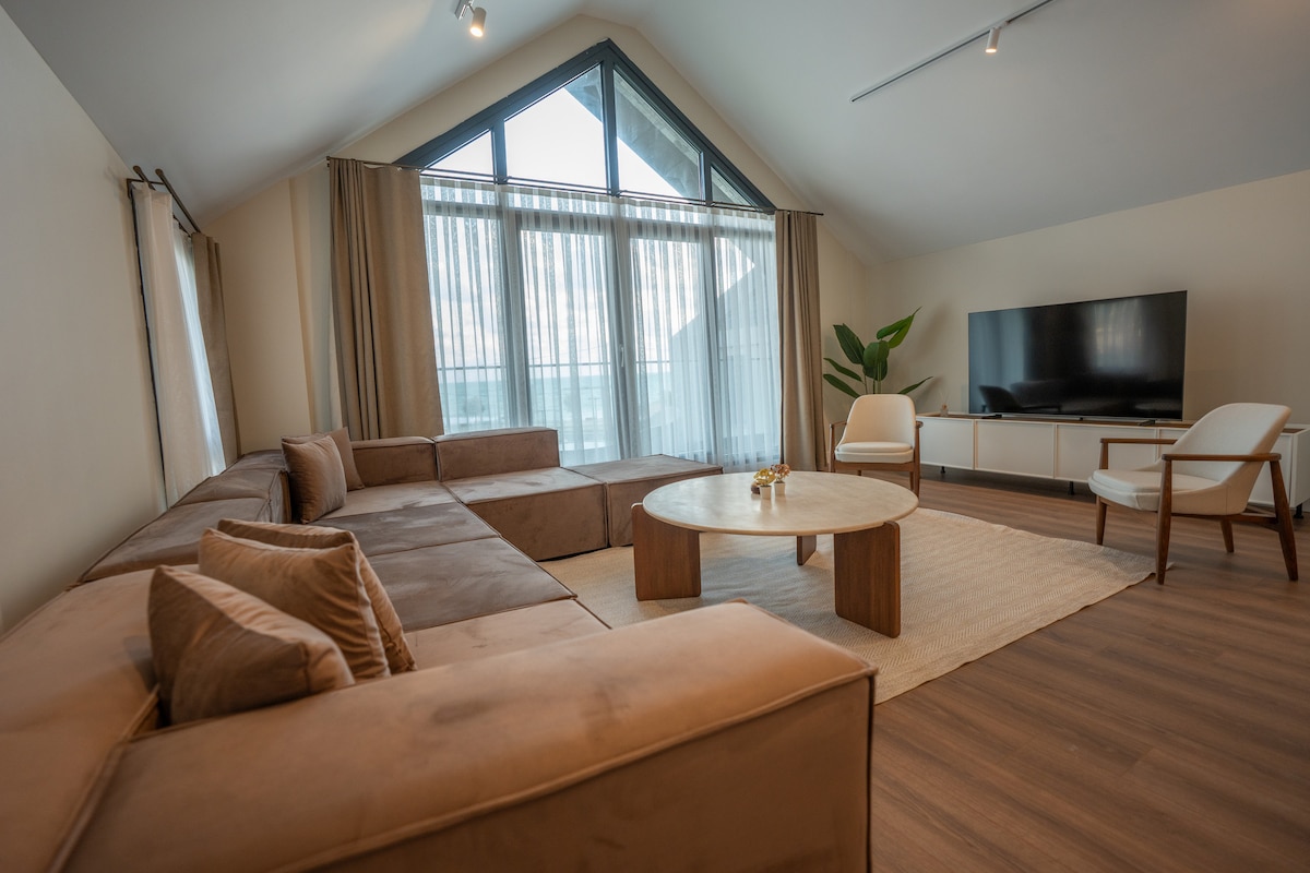 This duplex has three rooms (one master bedroom with home theater), 24h hot water, check in with helpful host, 500Mbps internet speed, very big saloon and very big kitchen. One side looks East which you can enjoy sunshine and other side looks West which gives peaceful sunset. All rooms and saloon have AC, PS5 and all Netflix, Amazon Video and Disney accounts. Duplex is on the top floor of a building which is top of an hill so there is a spectacular view. Its your complete home.