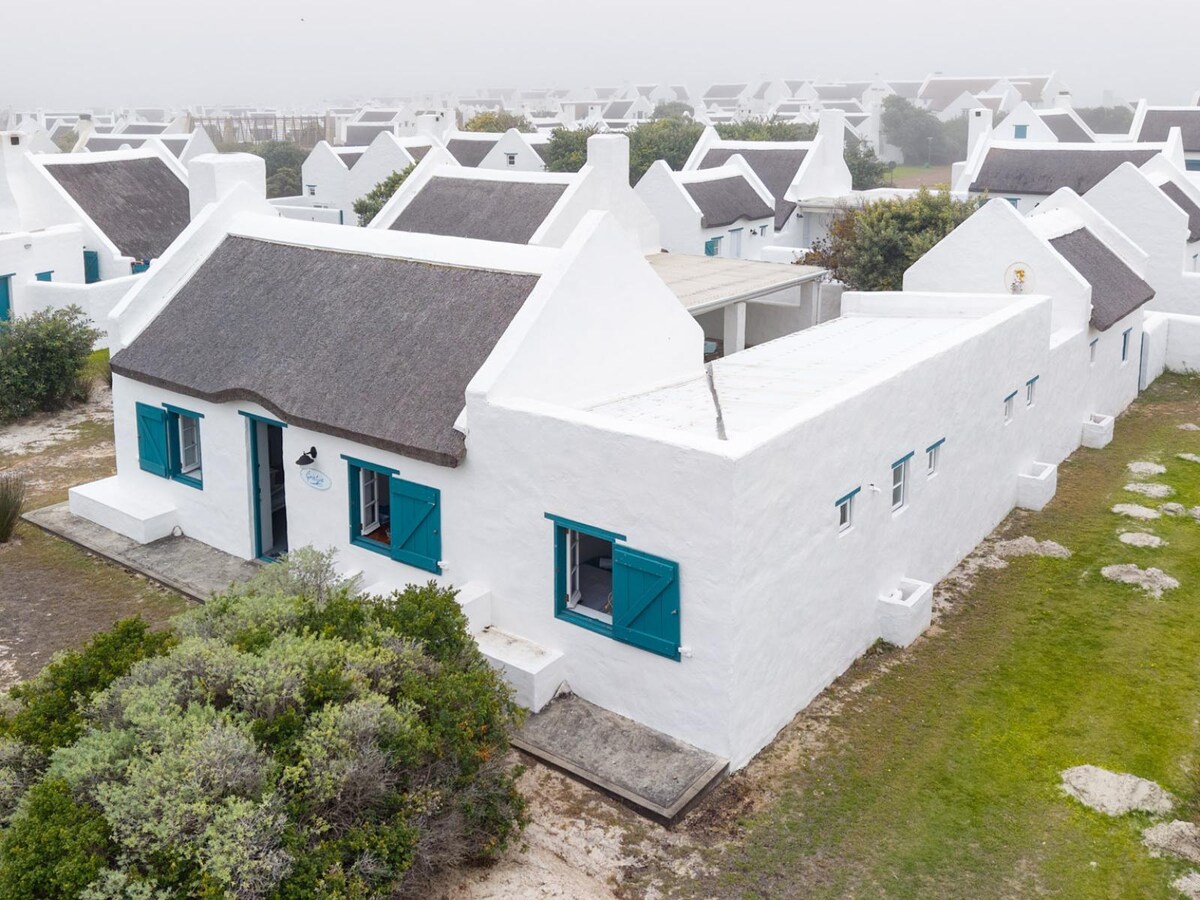 Nuestra casa de vacaciones se encuentra en la exclusiva finca Langezandt, un enclave privado en primera línea de playa de Struisbaai, a 2,5 horas de Ciudad del Cabo. La cabaña cuenta con renovaciones modernas, así como una cocina lujosamente equipada, acabados de calidad y una pequeña y encantadora piscina privada. El estilo de vida interior y exterior es perfecto para vivir al aire libre. Date un paseo de 4 minutos hasta una playa de arena o relájate junto a la piscina. ¡El wifi con una batería de respaldo "contra la carga" significa que puedes trabajar de forma remota si realmente es necesario!