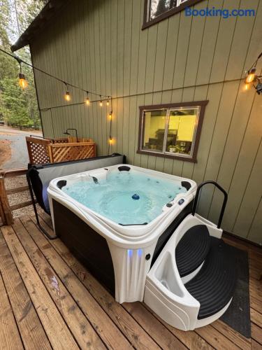 Ubicado a 5000 pies de altura a medio camino entre Murphy's & Bear Valley Ski Resort, el acogedor y elegante Chalet está idealmente ubicado en el centro de todo. La aventura te espera durante todo el año. Disfruta de las pistas, senderos, lagos, viñedos o simplemente sumérgete en la serenidad. Ya sea que se trate de días llenos de acción o escapadas relajadas, este es el lugar perfecto para ser tu refugio. Con una cálida chimenea, una decoración encantadora, comodidades bien pensadas y una bañera de hidromasaje rejuvenecedora para relajarse después de un día de exploración y recuerdos inolvidables.