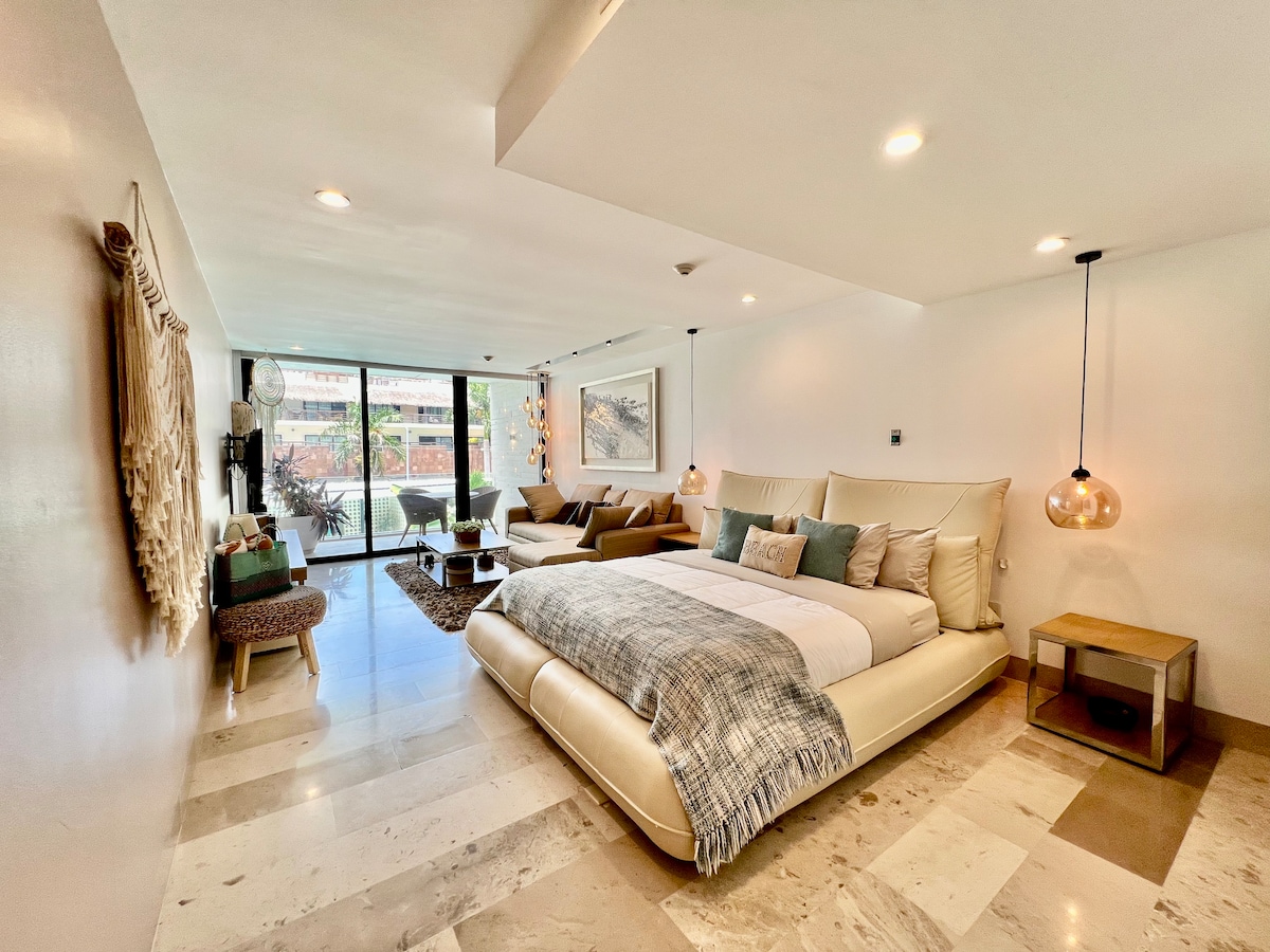 Wake up to a Priceless Caribbean oceanfront view. Enjoy your own plunge pool in terrace. Head downstairs for beach access. Walk everywhere…distance to the 5th ave and many other shopping & dining options. Gourmet restaurant in building & rooftop infinity pool. Gym Este lugar tiene una ubicación estratégica: ¡será muy fácil planear tu visita! estrategicamente ubicado frente al mar con los mas famosos clubs de playa justo al lado, area vibrante y a cinco minutos caminando de la quinta ave