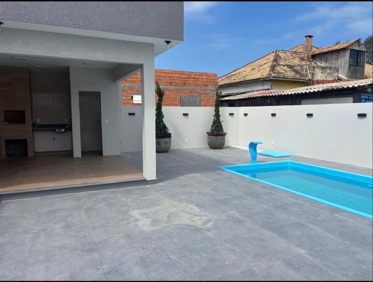 Casa nova e aconchegante, ideal para famílias. São 2 quartos com cama de casal, Wi-Fi 160 Mbps, Smart TV, espaço para trabalho e ventiladores em todos os cômodos. Cozinha equipada. Área com churrasqueira, espetos e cadeiras de praia. Ótima localização: 400m do mar, mercado a uma quadra, próximo à Av. Interpraias, 10 min do centro de Arroio do Sal e 8 min do Acqua Lokos. Posto de recarga para carro elétrico a menos de 1 km. ⚠️ Não fornecemos itens de uso pessoal (lençóis/cobertas/travesseiro).