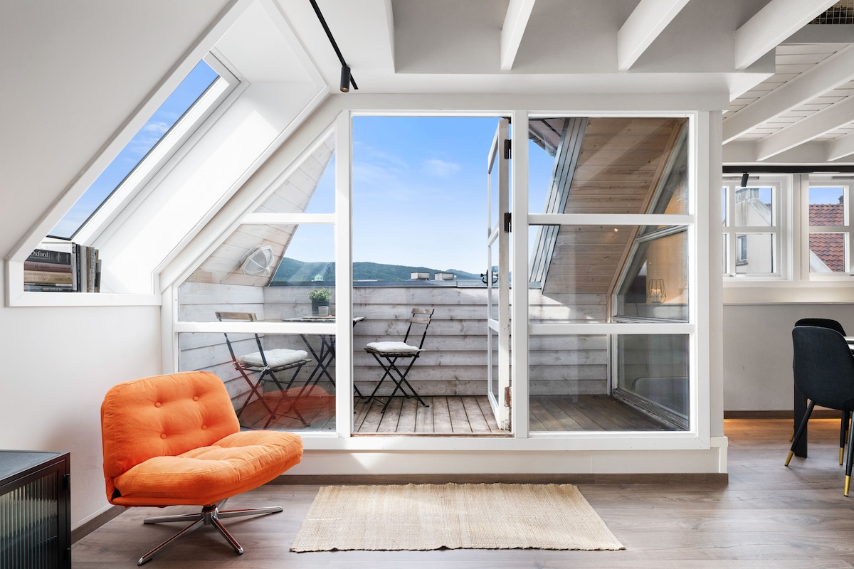 Nuevo ático centro de Bergen. Ascensor y terraza