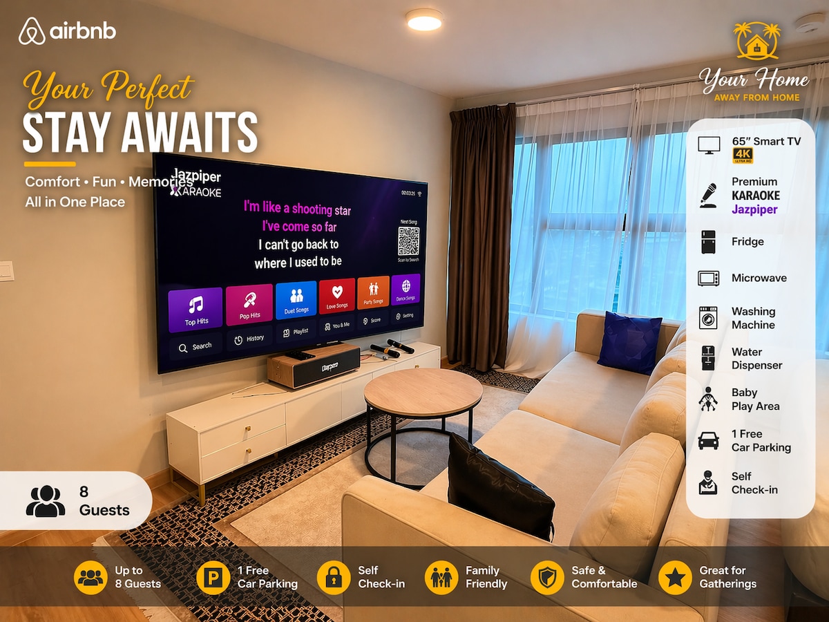 Unidad especial y sorpresa para ti: (Solo uno en Malasia) *Tenemos una instalación maravillosa para ti* - Lavadora y secadora. - Insumos de cocina - Estacionamiento gratuito. Proyector de 100' -Top cielo estrellado - Bañera de hidromasaje -Secadora - Filtra el agua para beber. -Concepto dúplex Prohibido fumar 🚭 Disfruta de un día maravilloso con nosotros ~