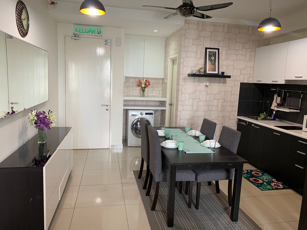 ¡Apartamento dúplex limpio y desinfectado, cuídate! Ubicación privilegiada, de fácil acceso a través de LRT a solo 1 PARADA de KL SENTRAL, que te conecta directamente desde KLIA y con toda la ciudad. PUENTE DE ENLACE DIRECTO CUBIERTO a la estación de Bangsar LRT, cajeros automáticos y tienda de comestibles. Cerca de KL Sentral, a 5 minutos, y de Mid Valley Megamall, a 10 minutos. Un lugar adecuado para viajeros individuales/de negocios, ¡bienvenido a tu estancia vacacional!