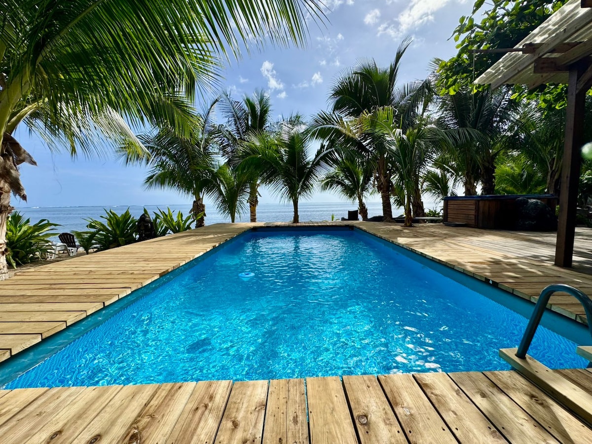Escápate a nuestro sereno bungalow, ideal para el romance. Ubicado en medio de tres pintorescas casas de campo tahitianas, ofrece una mezcla de autenticidad y paz. Admira las impresionantes puestas de sol y las vistas de los surfistas. Este refugio cuenta con WIFI, NETFLIX, un acogedor cama tamaño queen, kayaks y una parrilla para barbacoa. Admira la laguna a través de la ventana de la bahía y relájate en la terraza de madera junto a la playa de arena. Con una ubicación conveniente, una tienda cercana ofrece pan fresco y pasteles, junto con una pizzería y un camión de comida.