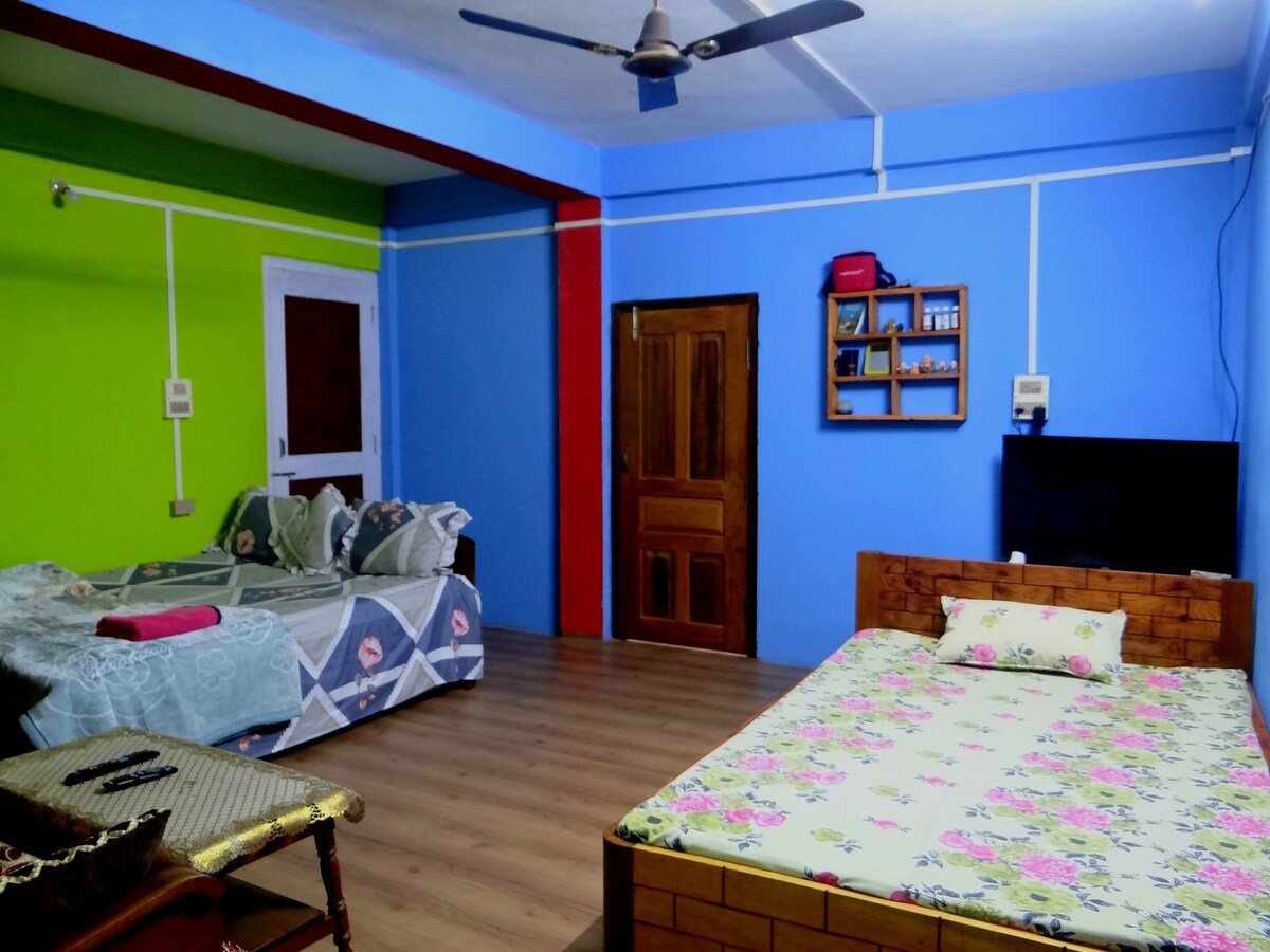 Sumérgete en el encanto atemporal de nuestro bungalow vintage enclavado en medio de la naturaleza. Descubre la tranquilidad en el amplio césped verde adornado con flores vibrantes y árboles majestuosos. La casa, estratégicamente ubicada, cuenta con una entrada cautivadora y ofrece un refugio para los amantes de la naturaleza que buscan un retiro cómodo y sereno. Experimenta lo mejor de Jorhat en este pintoresco santuario. ¡Tenemos una conexión wifi de alta velocidad y un televisor con sistema de música adicional para que disfrutes de una estancia cómoda y sin esfuerzo!