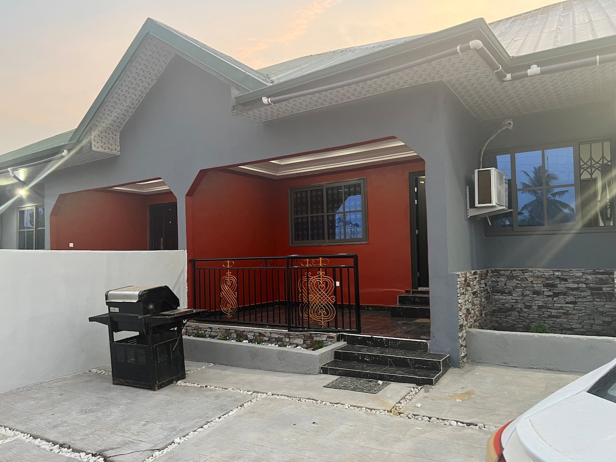 Inside our home, you will be treated to all the luxuries; ● ensuite bedrooms ●spacious open living & dining ●washing machine ●fully equipped kitchen ●all bedrooms and living rooms fully air-conditioned!! ●TV in every room ● Free WiFi ● A secured electric fence ● 24-hour security ● standby generator to avoid any surprises!! ●A car and a driver await you (upon request) to help you explore every part of Ghana ● An award winning chef to take in your orders be it continental or local dishes!!