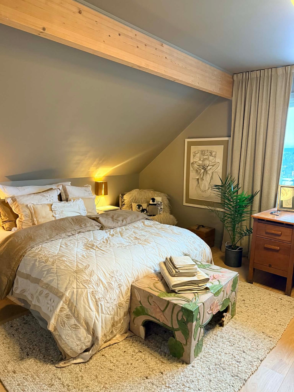 Dette er et nyoppusset, lyst og hyggelig hjem hvor du leier et privat rom i et delt hus med eier. Rom og bad er i andre etasje og fremstår som skjermet. Gjestene har tilgang til kjøkken i tillegg til eget rom og en suite bad. Boligen har en praktisk beliggenhet nær tog og buss, med enkel adkomst og kun ca. 12 minutter med tog til sentrum. Vennligst merk: En vennlig katt bor i hjemmet.