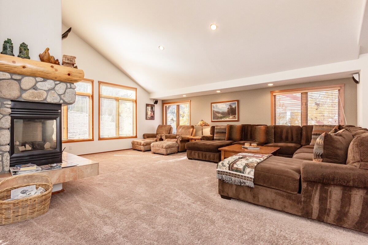 It's like camping with a 3250 sqft home, a flat-screen TV and WiFi. Enjoy the outdoors and breathtaking mountain views and come back to relax in a large mountain home with decks that have endless views of the Sierras and a comfortable and contemporary interior. The house privately sits on a cul-de-sac with only a few other homes. It is surrounded by hiking trails, fishing lakes and streams and it is only a 15 minute walk to Cardinal Village Resort.