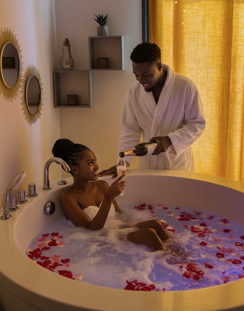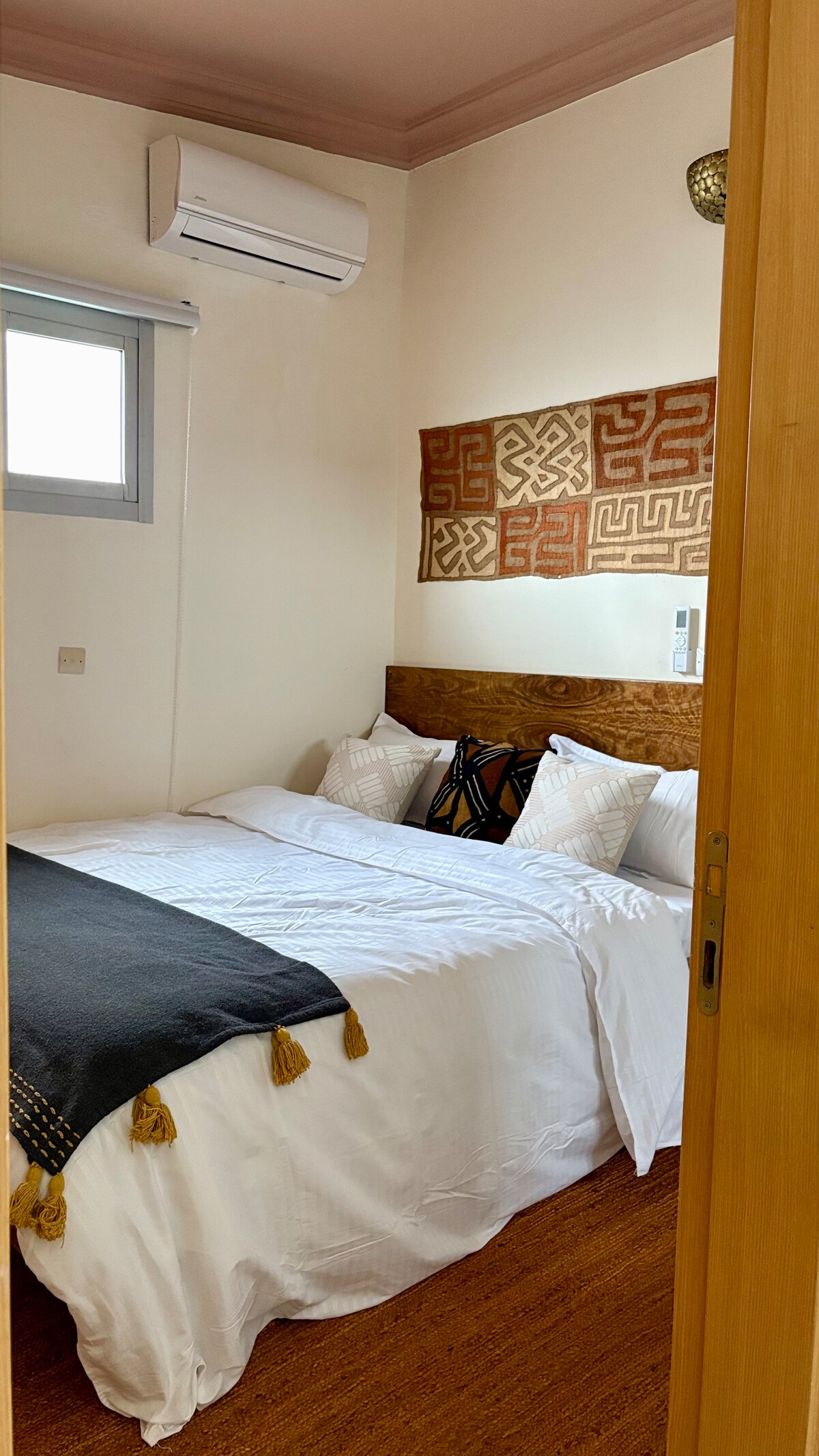 Bienvenue à Résidence HAYMES, Un appartement alliant élégance contemporaine, accents africains et haut de gamme. Niché au cœur du quartier calme de Mockeyville, ce cocon d’une chambre vous offre l’intimité d’un chez-soi, et le raffinement d’un lieu pensé pour se ressourcer. Style & Ambiance Décoration afro-minimaliste, lignes épurées, matières naturelles, objets d’art et mobilier recherchés pour profiter des chaleureuses journées, et des douces soirées bassamoises...
