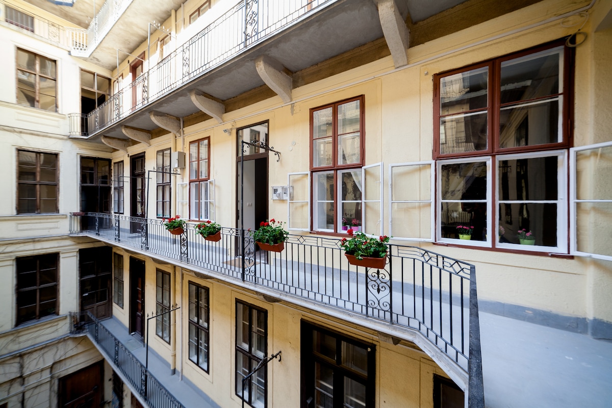 Our apartment is in the heart of Budapest by the Synagogue. The area is lively and full of character: shops, 24/7 stores, cafés and restaurants offering Hungarian, Italian, Indian, Turkish and many other cuisines are just steps away. Famous ruin bars start around the corner. Szimpla Kert is about 200m, Deák Square and the Budapest Eye are a 5-6 minute walk, and the Danube is roughly 10 minutes. Rudas and Gellért Baths are only a few bus stops away. Cosy balcony and an elevator for your comfort.