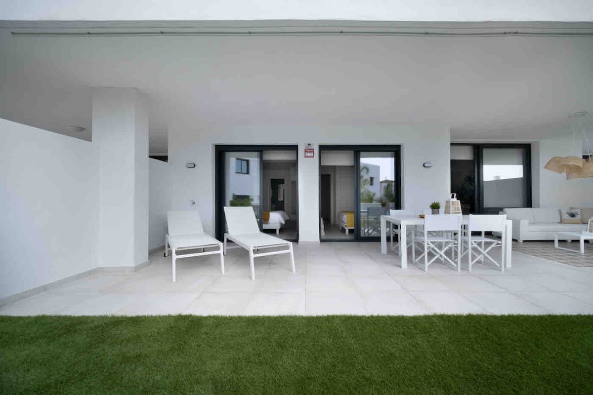 Revel in the comfort of this brand-new luxurious 2BR apt with beautiful facilities in the Cortijo del Golf retreat. Enjoy an elegant setting in an ideal location to explore the area and enjoy golf, beaches, tennis, spa, shopping and more! ✔ New (2021) 122 sqm apt ✔ Large Comfortable Beds ✔ Fully Equipped Kitchen ✔ 38 sqm Private Terrace ✔ High-Speed Wi-Fi ✔ 4K smart TV ✔ Wall-Wireless Sound System ✔ Beautiful Adult + Children Pool (seasonal) ✔ Gated Community ✔ Garage Parking Learn more below!