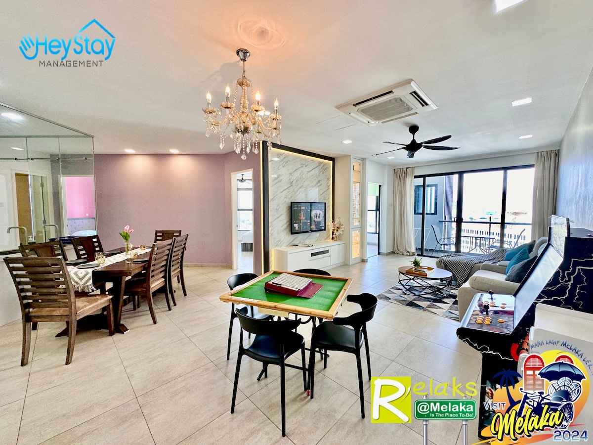 Create Your Moment Here MaxJovial Holiday Management Private Jacuzzi Villa • Super Nice SeaView Private Jacuzzi with Massage Bubble • Private Jacuzzi with Normal Temperature Water • 2 Bed Room with 2 King Size Bed • Balcony with Sea+Sunset View • Comfortable design • 1290 square feet Located in the heart of downtown , near to the tourist attractions and famous restaurants in Melaka . 马六甲开放式家庭式套房(4人住) • 舒适的设计 • 附带阳台 • 1290 方尺空间 • 客厅以及浴室及私人泳池 坐落在甲市中心,地理位置优越 -旅游景点以及著名美食近