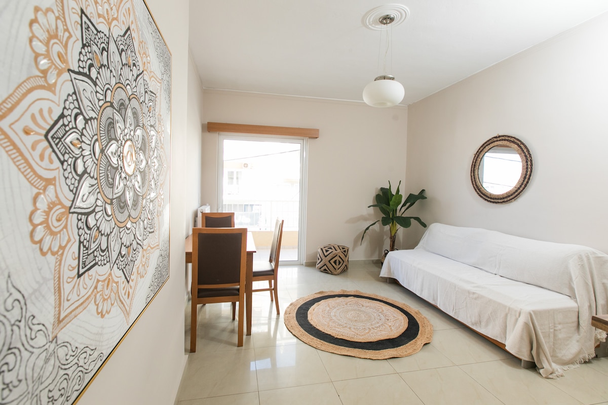 Apartamento frente a la playa de 71 m2 con un balcón de 20 m2. Dos dormitorios, ambos frente a la playa. Situado en la ciudad (rodeado de supermercados, restaurantes, tiendas, etc.) en medio de una carretera costera de 2900 m, ideal para paseos a pie y en bicicleta. Todo lo que puedas necesitar (bancos, parques infantiles, hospital general, etc.) está en un radio de 1.500 m. Ideal para familias con niños. El auto no es necesario, a menos que quieras utilizar el apartamento como base para explorar Creta.