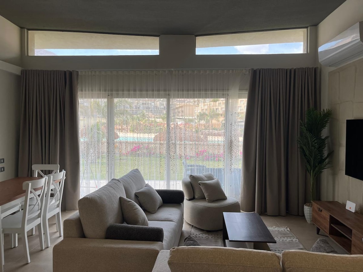 ACCESO A LA PLAYA INCLUIDO. BARBACOA INCLUIDA. Nuestra villa ofrece una rara mezcla de comodidad, privacidad y vistas impresionantes. Ubicada en el exclusivo complejo de Little Venice, con un complejo en Ain Sokhna, también cuenta con un espacioso diseño de villa independiente con 3 dormitorios (con aire acondicionado), un jardín privado y una impresionante vista del campo de golf. Tanto si te relajas con la familia como si disfrutas de una escapada tranquila, el ambiente apacible y las comodidades del resort lo convierten en una escapada perfecta.