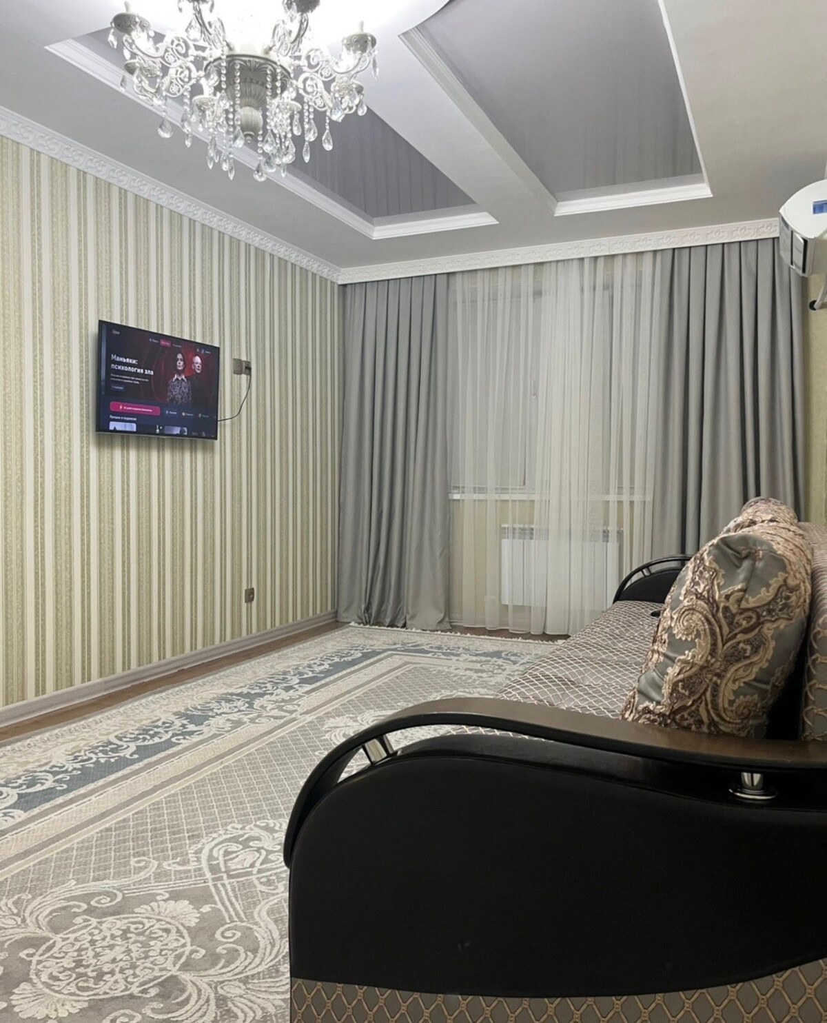 ABYROY RESIDENCE Современная, однокомнатная квартира, в премиальном комфортабельном охраняемом жилом комплексе "ABYROY RESIDENCE" Свежий ремонт, вся мебель и техника новые Апартаменты с дизайнерским ремонтом со спальней и кухней Для Вас в квартире имеется все необходимое для комфортного проживания: *Wi-Fi *Smart TV *Система климат-контроля *домофон *Вся бытовая техника (СВЧ эл/чайник вся кухонная принадлежность, стиральная машина утюг гл/доска) *Полотенца постельное белье *Гигиенические средства