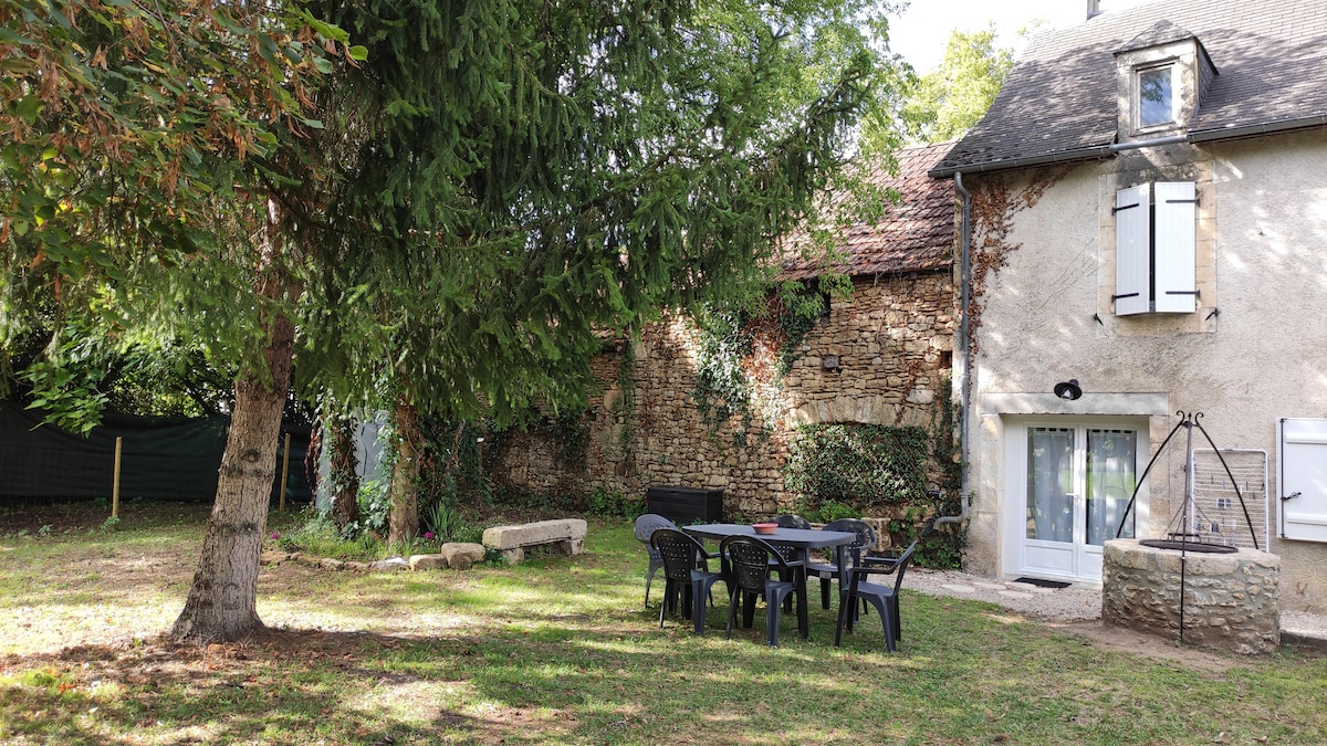 Beautiful cottage with beams and exposed stone. Parking and entrance into private courtyard garden with covered eating terrace and private jacuzzi. French doors into house. The kitchen is fully equipped, the lounge is very comfortable and warm with a pellet stove for winter The river vezere is only 50 mètres from your house, excellent for canoeing, wild swimming and picnicking 2 minutes by car to the stunning medieval village of Condat. 25 minutes to most of the Pre history Unesco sites.
