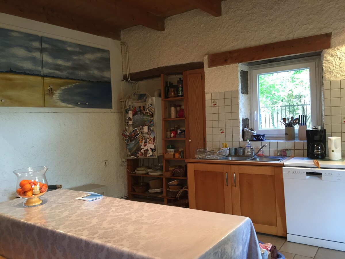 Apartamento cerca de todos los lugares de interés y comodidades, lo que facilita la planificación de su visita. Situado en el segundo piso de una casa de dos pisos con garaje, wifi, terraza amueblada (barbacoa). Acceso rápido a las autopistas A89, A75, A71. El apartamento es adecuado para dos adultos con cama de 140 y 2 niños ( sofá cama en el salón de televisión). Su cama estará hecha a su llegada. Toallas también. Café, chocolate, mantequilla, agua fresca disponible.