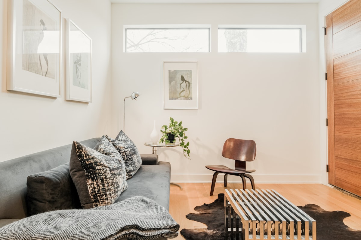 Los elegantes tonos grises, las encimeras de granito y los suelos de madera crean una sensación cálida y elegante en este apartamento moderno y separado. Nuestro apartamento fue construido a medida en 2017. Cuenta con acabados de alta gama y todas las comodidades de un hogar. Internet de alta velocidad, un televisor inteligente y audio en toda la casa proporcionan entretenimiento cuando necesites un descanso de disfrutar de la ciudad. Ten en cuenta que hay varios proyectos de construcción en nuestro vecindario cambiante que pueden causar ruido durante el día.