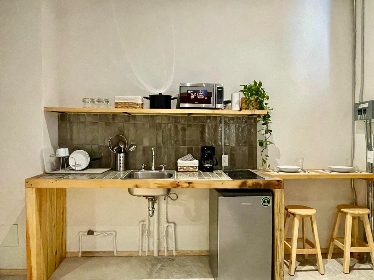 ¡Bienvenidos a Coyoacán! Estupendo loft de 120 m2 ubicado a tan solo 5 minutos caminando del Centro de Coyoacán. Vive la experiencia de este tranquilo e iluminado espacio abierto, ideal para descansar o trabajar y decorado con objetos llenos de historias. El loft se encuentra en el tercer piso de Casa Mavi, una antigua fábrica que fue remodelada para crear un lugar lleno de encanto que lo hace único. Cuenta con terrazas de uso común. Con opción para un tercer huésped. Wifi 200 megas.