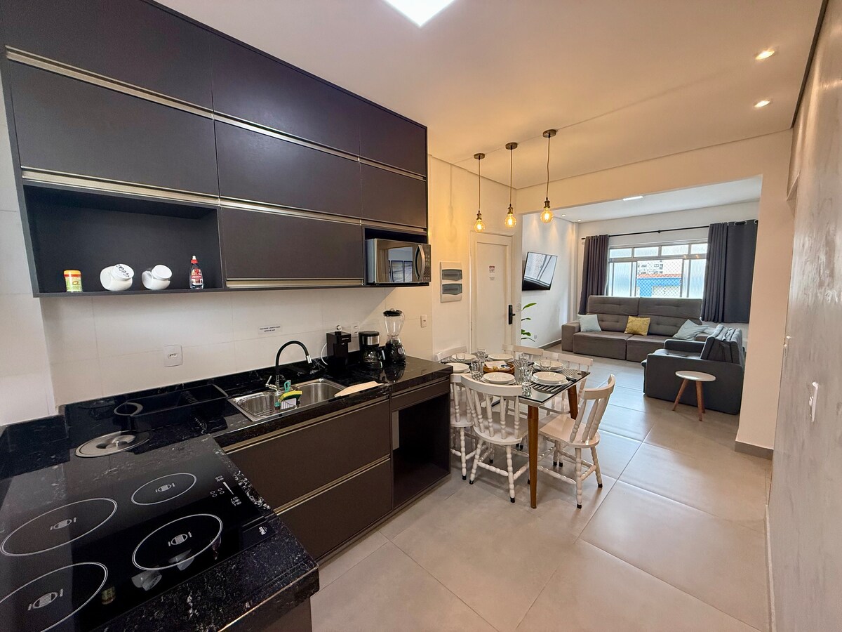 Apartamento Lindo ubicado en la mejor región de São Vicente con vista al mar y a pie en la arena. Ofrecemos un estacionamiento cerca del sitio. Cerca de restaurantes, bares, farmacias, supermercados y las principales playas de la ciudad. El Ape cuenta con aire acondicionado, Wi-Fi de 350 Mb, TV de 55pulgadas con canales abiertos y Netflix, ropa de cama completa, cómoda cama y sofá cama, cocina completa, además de una mesa de comedor con una vista apasionada. ¿Te dice si no es un placer pasar un rato?