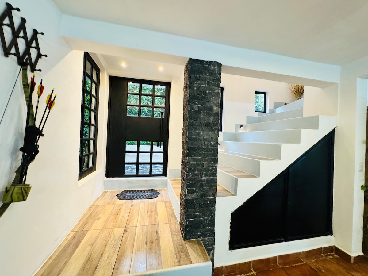 Ven a disfrutar de una agradable estancia rodeada de bosques, plantas y naturaleza. Pequeña casa con todo lo necesario para unas vacaciones fuera de la ciudad, respirando aire limpio y en la tranquilidad de Avándaro, Valle de Bravo. Estamos dentro de un terreno de 6,000 metros, que aunque compartimos con otras casas, gracias a los grandes árboles, plantas y zona boscosa le da su propia privacidad a cada una de ellas. Tenemos un perro mixto llamado Harry que probablemente también te reciba.