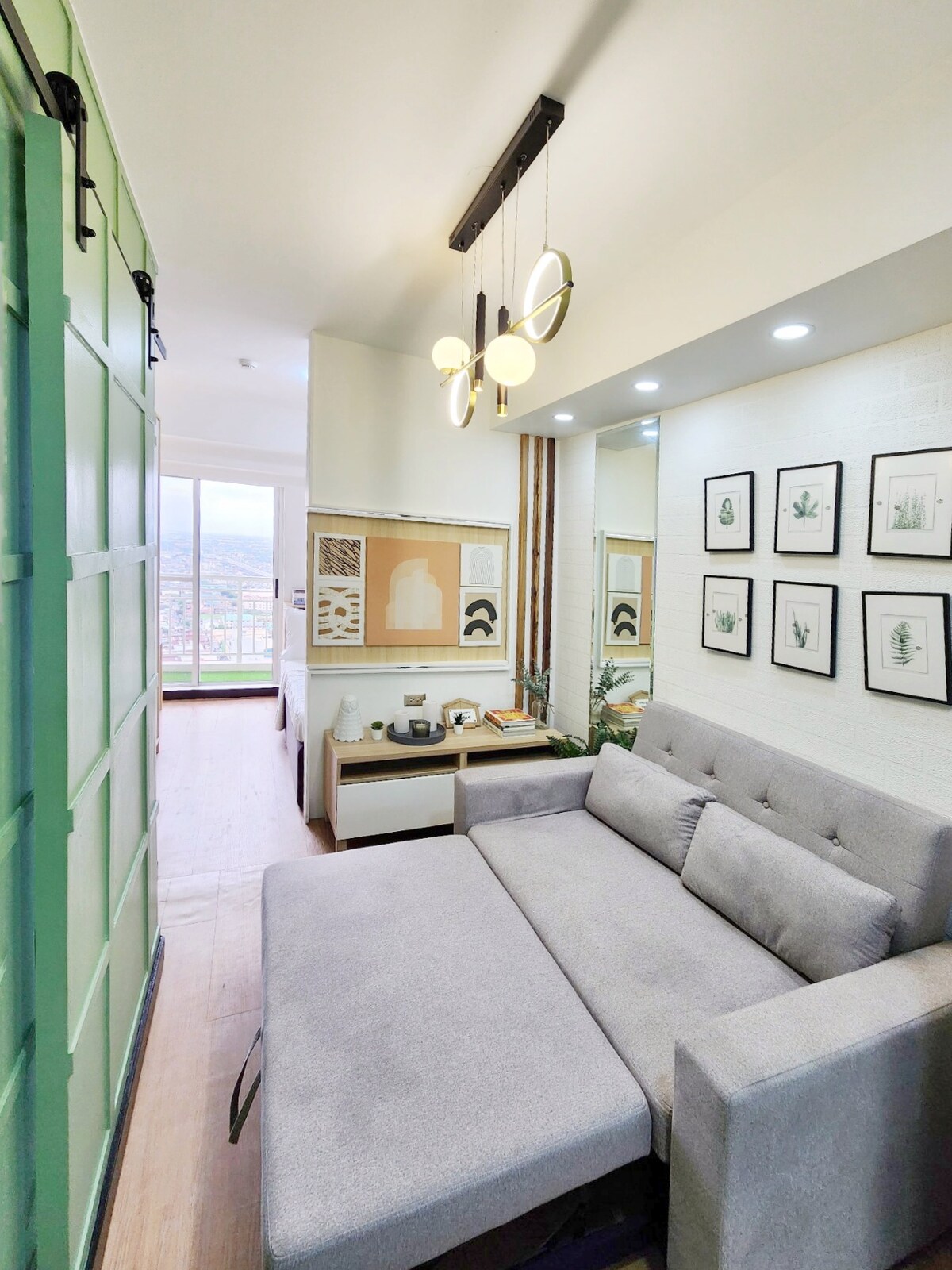¡Te damos la bienvenida a tu sereno oasis de inspiración bohemia! Este apartamento de 29 metros cuadrados bellamente diseñado cuenta con un relajante tema verde salvia, perfecto para la relajación y el rejuvenecimiento. Disfruta de acogedoras noches con Netflix en el lujoso sofá o prepara deliciosas comidas en la cocina totalmente equipada, con todos los utensilios de cocina y comedor. Convenientemente ubicado cerca de Ayala Mall Cloverleaf, Balintawak Market, Edsa y Skyway.