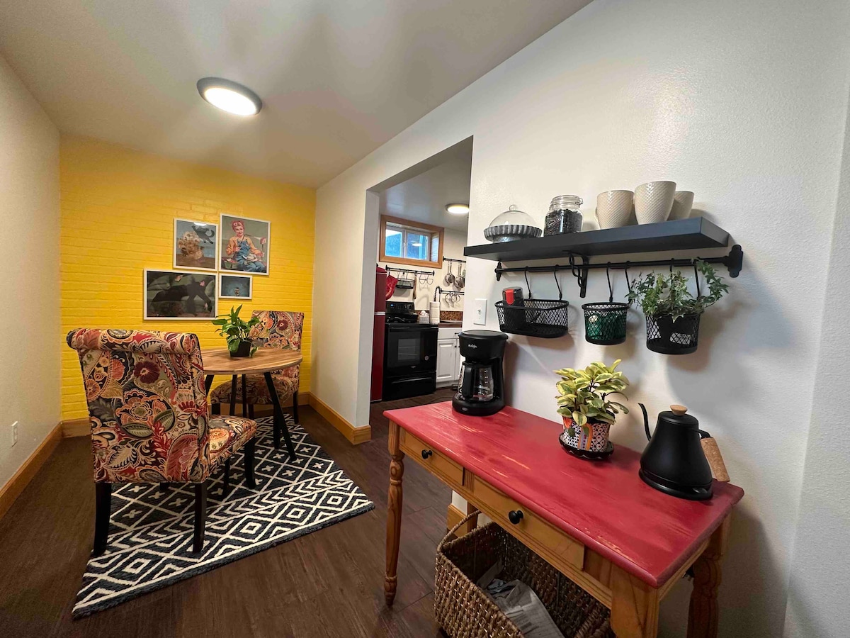 Relájate en este encantador estudio remodelado, con unas vistas inmejorables de The Sleeping Giant. A poca distancia en auto o en bicicleta del centro de Helena, la Fundación Archie Bray y los parques/senderos cercanos. 10-Mile Creek & Spring Meadow Lake a menos de una milla de distancia, con el monte Helena senderos justo afuera. El estudio cuenta con una cocina en el mostrador de bloques de carnicería, estufa gourmet, utensilios de cocina y configuración de mesa. Wifi, café orgánico, cafetera espresso, estacionamiento incluido. No se permite fumar en la propiedad; solo fuera del sitio, sin registro anticipado, mantén a las mascotas alejadas de los muebles.