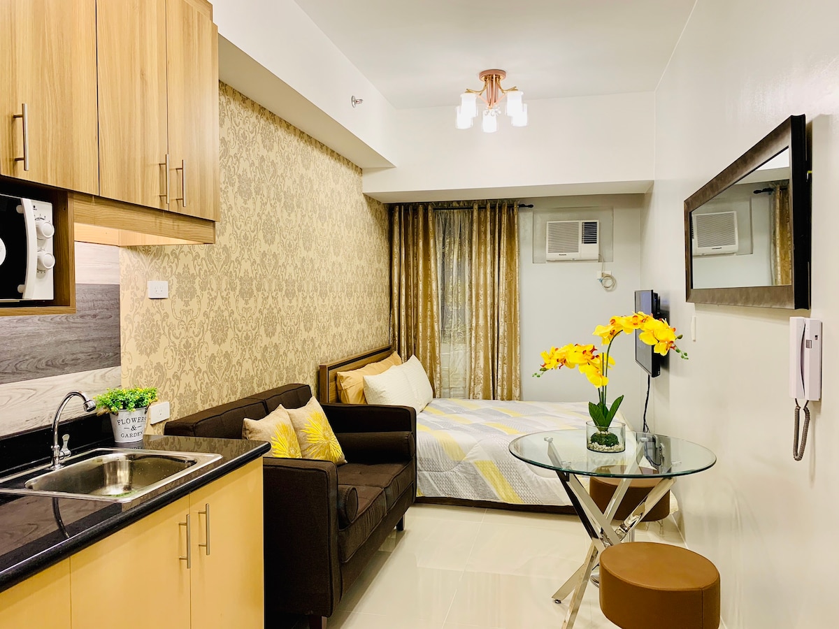 Discover our spacious and bright 1BR end unit with balcony in the newly built Tower 4, Fern Residences. Designed with you in mind, our luxurious boutique-hotel style unit features a fully-equipped kitchen, hotel quality mattress and beddings, convertible coffee to dining table, washing machine and fast WiFi. It is ideal for short and extended stay travellers and for those who just want to have a relaxing staycation.