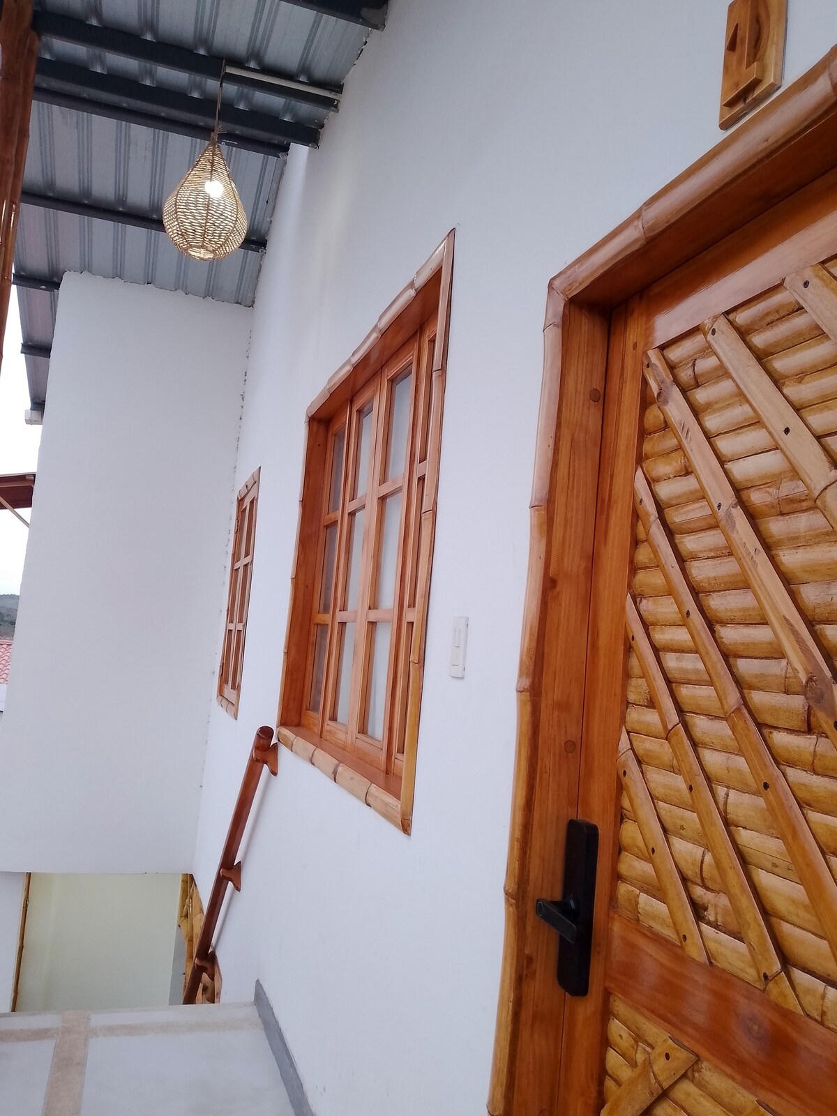 La suite combina elegancia, simplicidad y naturaleza, creando el ambiente perfecto para descansar, trabajar con tranquilidad o disfrutar de una escapada romántica en Olón. Al entrar, te recibe una sala luminosa con sofá amplio y detalles artesanales que crean una sensación de paz. La habitación principal cuenta con una cama King muy cómoda, iluminación cálida y un diseño natural en bambú que eleva la atmósfera de relajación.