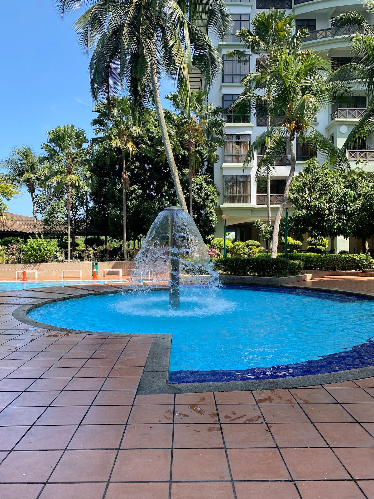 Max:7 Adult 1 Car Park | Muslim-Friendly | Large balcony for sunset views Bedroom Setup -Bedroom 1: Queen bed, A/C, fan, attached bathroom -Bedroom 2: Queen bed, A/C, fan -Bedroom 3: Single bed, A/C, fan #Extra single bed available. Amenities -WiFi+TV+Netflix(May log in with personal acc) -towels -washing machine -iron & board -refrigerator -microwave -rice cooker -water filter -plates & cutlery. Facilities -Swimming pool -gym -badminton court -park No smoking & pets RM50 refundable deposit