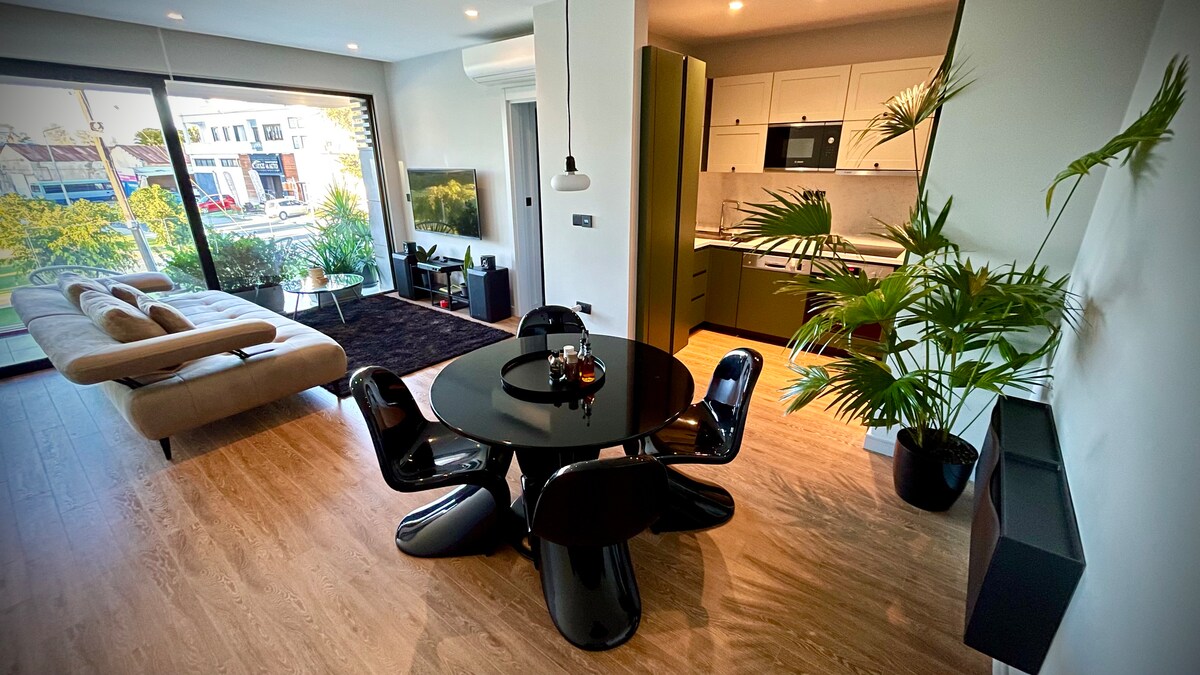 Disfruta de la experiencia en este encantador apartamento de un dormitorio en la mejor ubicación. Este es un apartamento moderno de nueva construcción en un complejo residencial con balcón donde puedes sentarte y disfrutar de maravillosas vistas al mar Mediterráneo. Todo el espacio está totalmente climatizado. Puedes estacionar fácilmente en el espacio de estacionamiento privado de los apartamentos. A 5 minutos a pie de hermosas playas de arena y la única Ciudad Fantasma de Varosha (Kapalı Maraş). Los restaurantes y bares están a 4 minutos, el antiguo casco antiguo de Famagusta a 10 minutos a pie.