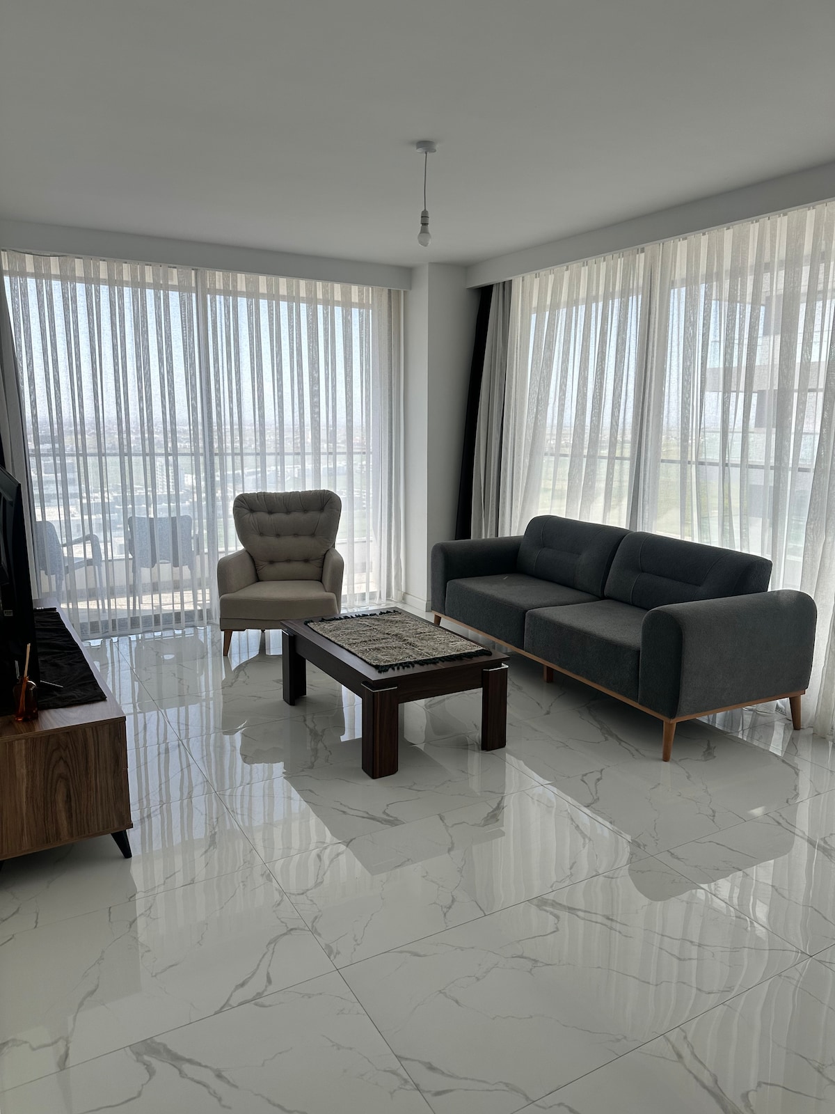 Enjoy a delightful stay in this modern apartment located on the 25th floor of the Grand Sapphire Residence in Iskele, North Cyprus The apartment features a fully equipped kitchen,a bedroom with a double bed,and a comfortable sofa bed in the living room It also offers a beautiful terrace with an outstanding view of the sea,pool,and resort Guests can enjoy the luxurious hotel facilities, including swimming pools, restaurants, and the casino, for an unforgettable stay in a lively seaside atmosphere