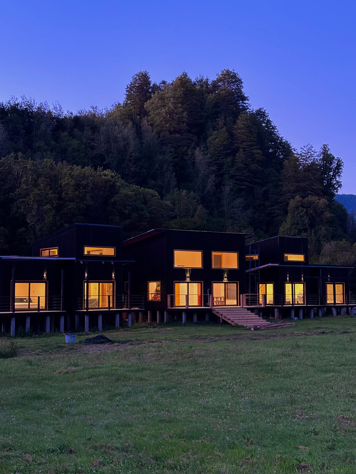Paisajes de belleza deslumbrante, una vista privilegiada a la ciudad, disfrutar del agua pura de vertiente a sólo 3,5 km de la ciudad de Coyhaique, confortables cabañas de diseño moderno que cautivan por su comodidad y entorno natural. En la ladera de un cerro y en medio de la naturaleza, unas cómodas cabañas de diseño moderno son el escenario perfecto para disfrutar del silencio y el entorno. A sólo 3,5 kilómetros de la ciudad de Coyhaique, se encuentra Patagonia Indómita, confortables cabañas de diseño moderno que cautivan por su comodidad y entorno natural. Paisajes de belleza deslumbrante, una vista privilegiada a la ciudad y disfrutar del agua pura de vertiente es parte de lo que podrás vivir en tu estadía. La madera es un material noble predominante al interior de las cabañas y que entrega calidez a través del alerce, lenga y tepa. Patagonia Indómita es un espacio ideal para la familia y grupos de amigos, posee un sistema de calefacción integrado que permite temperar de manera eficiente y rápida el espacio, así como también ventilar con aire frío. Las cabañas cuentan con 2 dormitorios con baños en suite, el living posee un sofá cama de 2 plazas, smart TV y una cocina completamente equipada con encimera, microondas, hervidor, refrigerador y utensilios. disfrutar del agua pura de vertiente. Patagonia Indómita busca que tu viaje se transforme en una experiencia de conexión con la naturaleza desde la confortabilidad de tu estadía. Acceso de los huéspedes Nuestros huéspedes pueden realizar trekking por las más de 270 Hectáreas que componen el establecimiento, disfrutar de una tranquilidad de alto valor agregado, flora y fauna autóctona, donde podrán observar el bosque nativo característico de la zona intermedia (Lenga, Coigue, Ñirre, Ciruelillo, Chilco, Calafate, Michay, entre otras especies) además de plantaciones exóticas de diversas clases de pino. También es posible observar fauna como pumas, cóndores, águilas, lechuzas, chunchos, pitios, teros, chucaos, tordos, cachañas, cernícalos, carpinteros negros, carpinteros rojos, zorros colorados, visones y coipos, faisanes, patos silvestres, patos real, zorrinos, entre otros. Poder apreciar el trabajo típico de la zona con la crianza de ganado, manejo sustentable del bosque y trabajo con bueyes, conservando el tradicional trabajo agrícola y nuestras tradiciones.