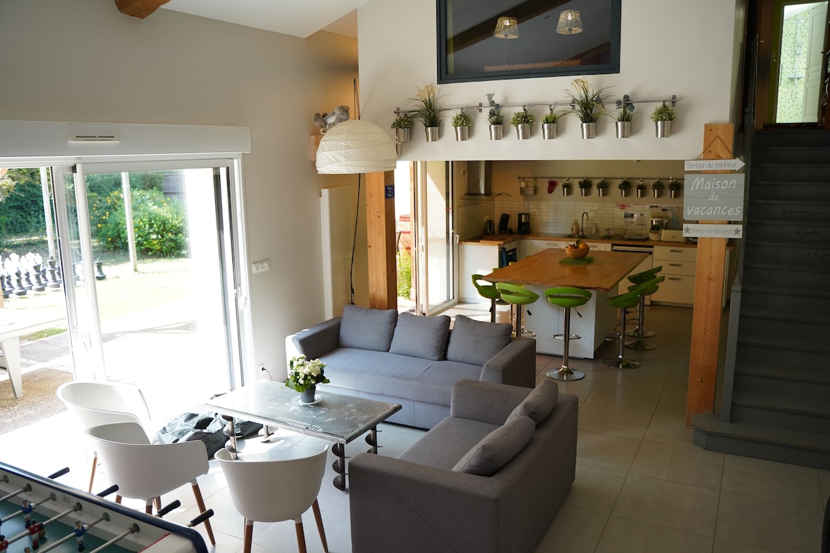 Charentaise avec pièce à vivre de 57 m2 dans un "esprit loft". 5 chambres dont trois de couples (super pour 3 familles). Plages à proximité (Fouras en face de fort Boyard - les 4 îles de Charente maritimes dont la fameuse île d’Aix) - borne recharge électrique 15 €jour/voiture - certaines personnes malhonnêtes se mettent malheureusement en « recharge sauvage » et souhaitent voir leur déplacement en voiture pris en charge par l’hôte…)