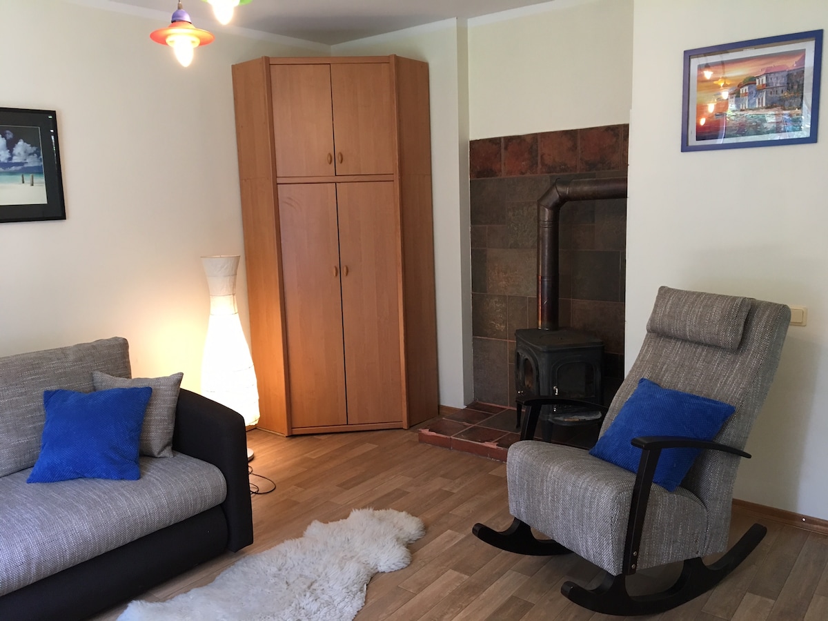 Forest Edge House is located in the quiet area on the outskirts of Riga by the edge of a small forest. It is a modern house and has a large lounge with log fire,full kitchen,shower room & toilet and sauna(additional charge) and upstairs a 2nd shower room & toilet.The terrace has a good view of the garden and has a bbq ready for use...It is possible to add 1 extra single bed (additional charge)and a baby bed (free). Sauna(extra cost). New! Hot Tub ( extra cost)subject to availability.