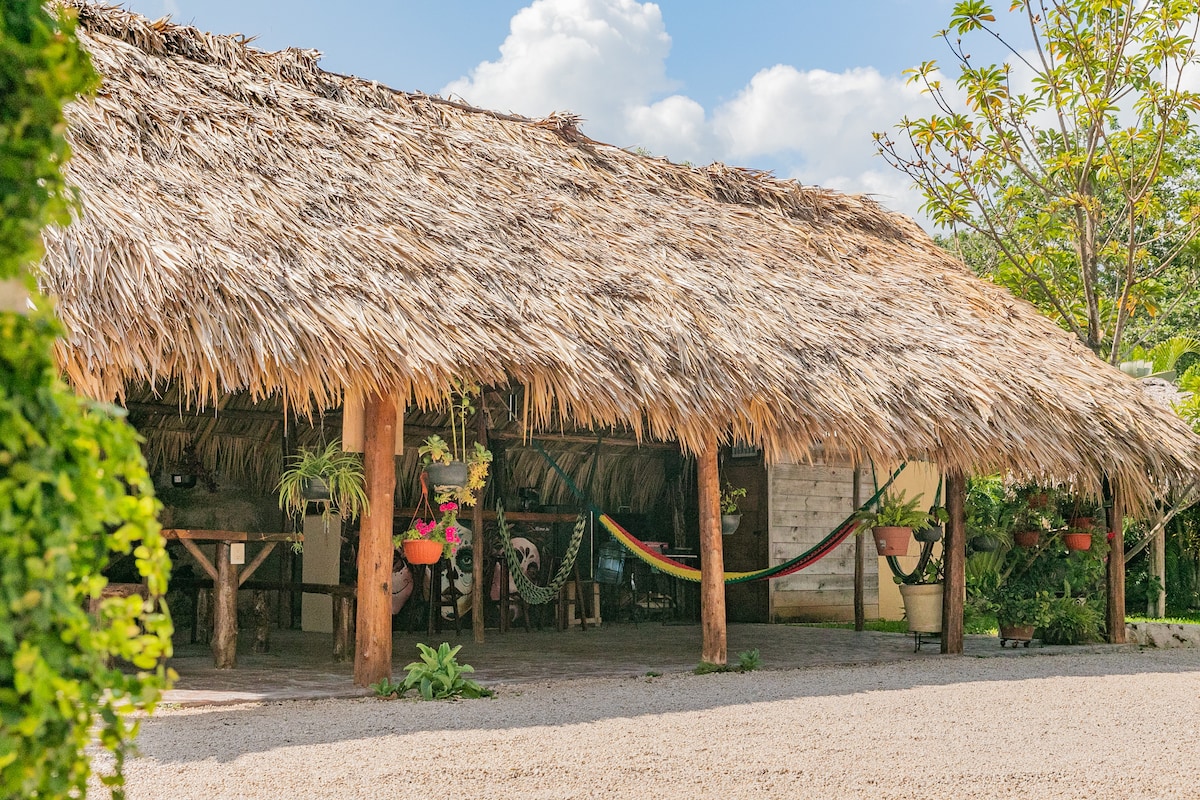 Sumérgete en una experiencia única en nuestra cabaña Colibrí, una acogedora suite enclavada en el corazón de la selva de Bacalar. Decorada con obras de arte exclusivas y detalles de diseño personalizados, esta cabaña te invita a desconectar y disfrutar de la naturaleza en un entorno sereno y creativo. Todos los rincones de la cabaña irradian tranquilidad y arte, ofreciendo una estancia inolvidable en la Laguna de los Siete Colores.