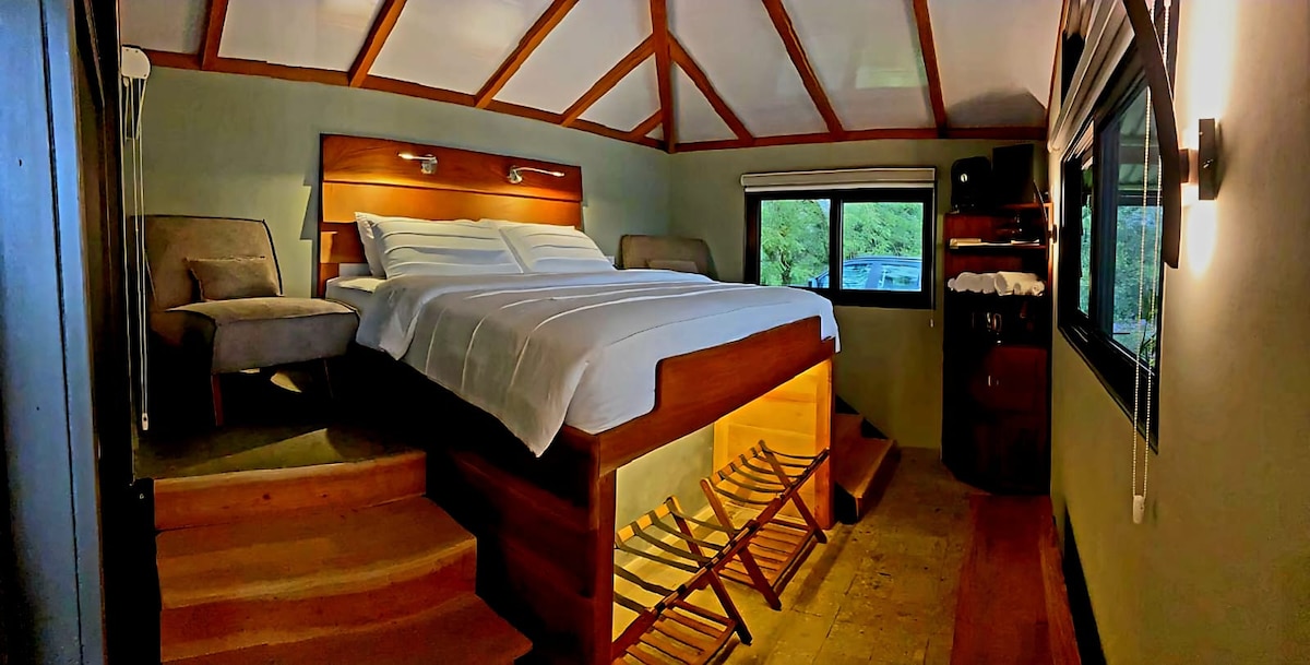 Cabaña La Corona – Refugio rústico en la montaña Ubicada en Fortuna de Bagaces, esta cabaña ecológica y acogedora es ideal para 2-3 personas. Cuenta con WiFi, cocina equipada, parrilla y una recámara amplia. Disfrutá de vistas espectaculares, atardeceres únicos y actividades como senderismo, ciclismo, aguas termales y tours al volcán. Perfecta para desconectarte y descansar.