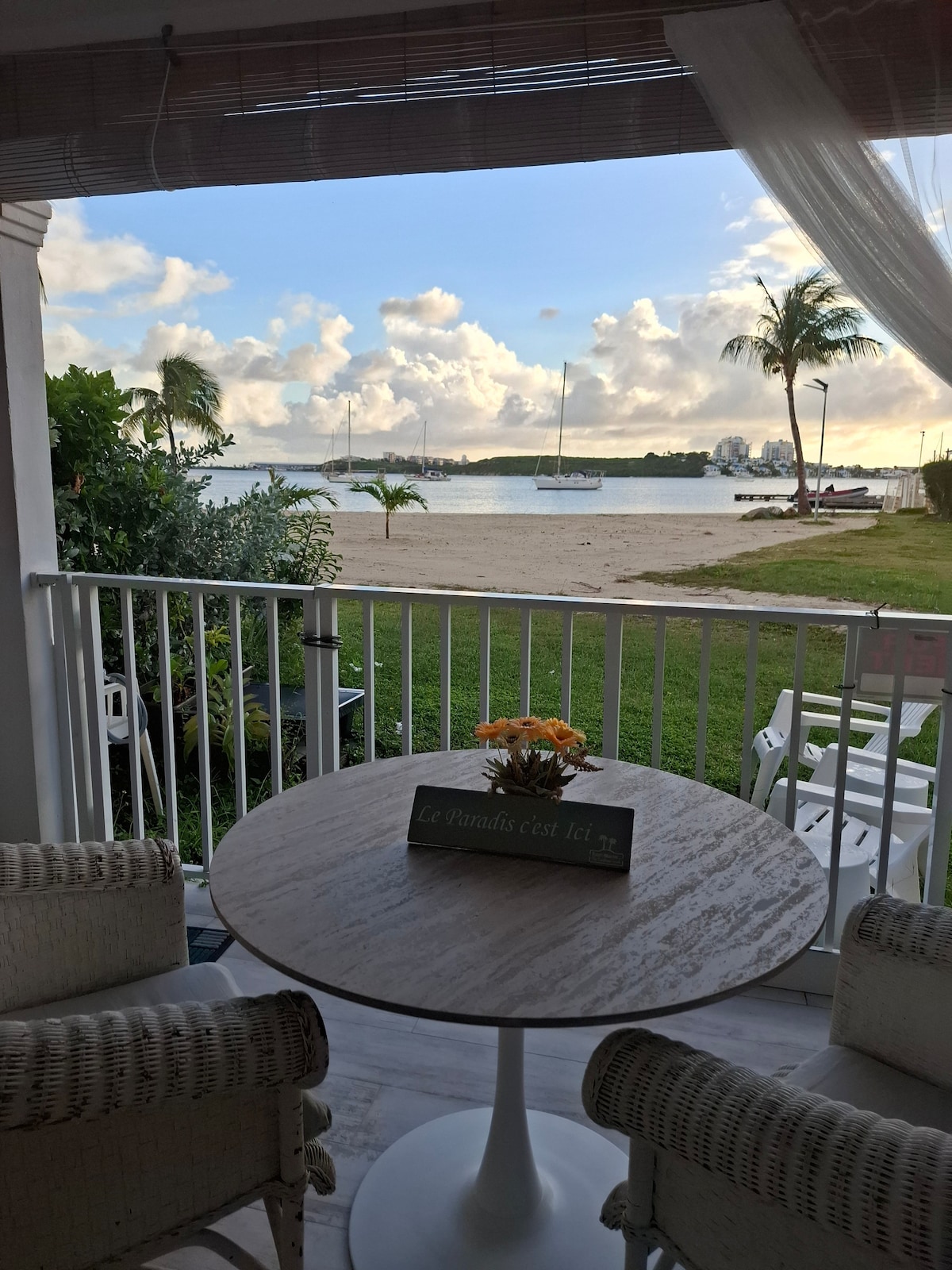 SITUACIÓN Excepcional. Vistas a la bahía de Marigot Junto al agua Frente al mar Caribe Preciosa playa de arena blanca, cocoteros, mar turquesa CARACTERÍSTICAS Casa dúplex en la playa Ubicación ideal para visitar 4 piscinas, 1 pista de tenis Un jardín precioso Urbanización con seguridad las 24 horas Aparcamiento gratuito Al lado: supermercado, panadería, restaurantes Ideal para parejas, familias o amigos ES BUENO SABERLO A 2 km de Marigot Se recomienda alquilar un coche. Wifi, paquete de limpieza, toallas, sábanas incluidas en el precio.