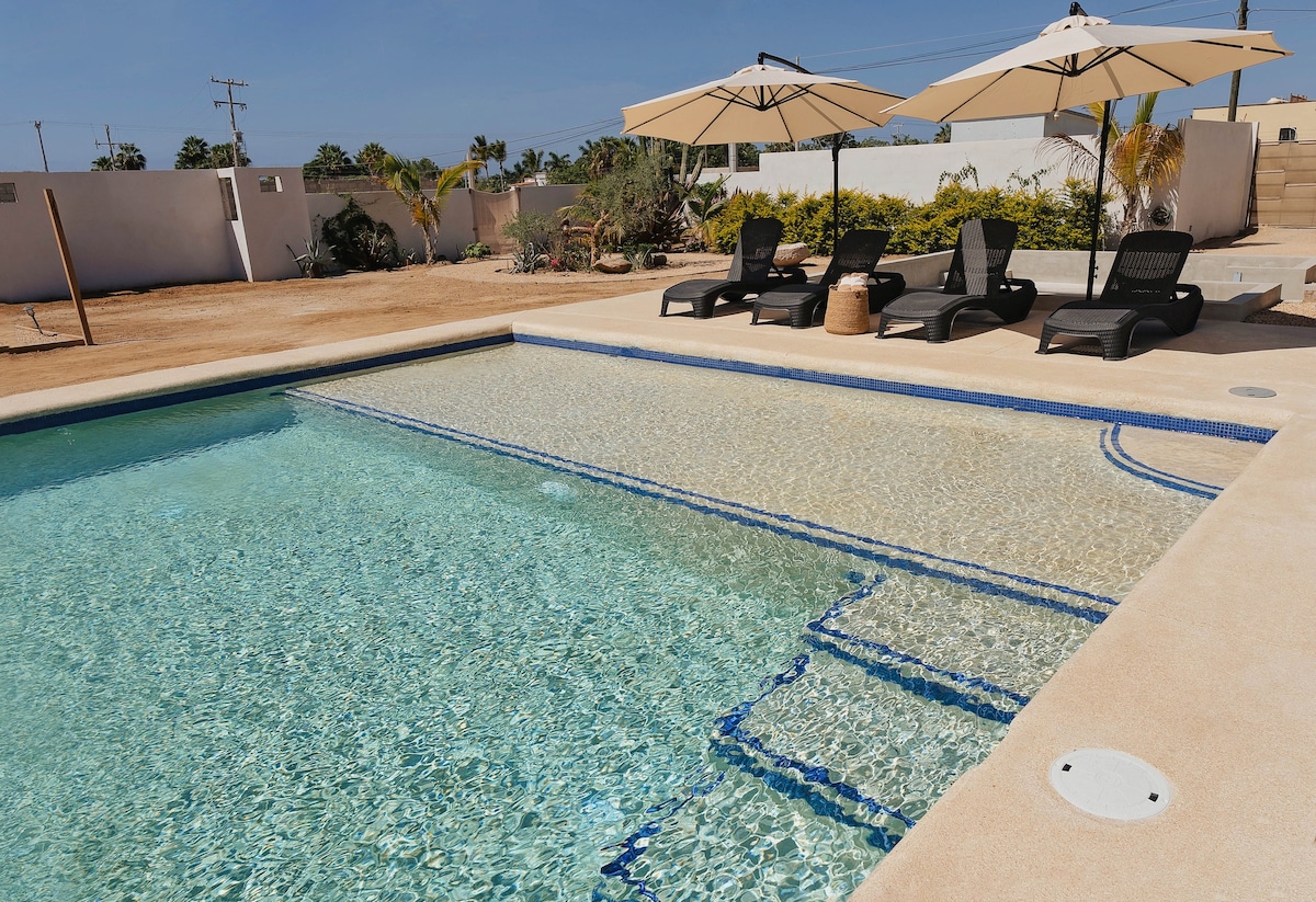 Welcome to Villas Tres Tierras! This stunning modern 2-bedroom, 2-bathroom home boasts a beautiful pool situated on a sprawling 0.9-acre property. Just a short 5-minute drive or 10-15 minute walk away, you'll find one of the most breathtaking swimming beaches in Baja Sur. Tres Tierras is the perfect escape from the hustle and bustle of daily life. This tranquil getaway is your home away from home, where you can relax and rejuvenate in peace. Welcome to Baja!